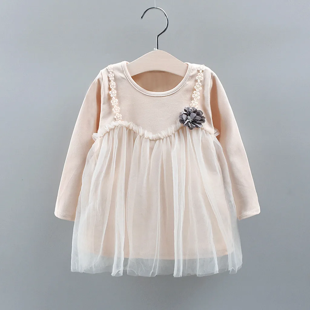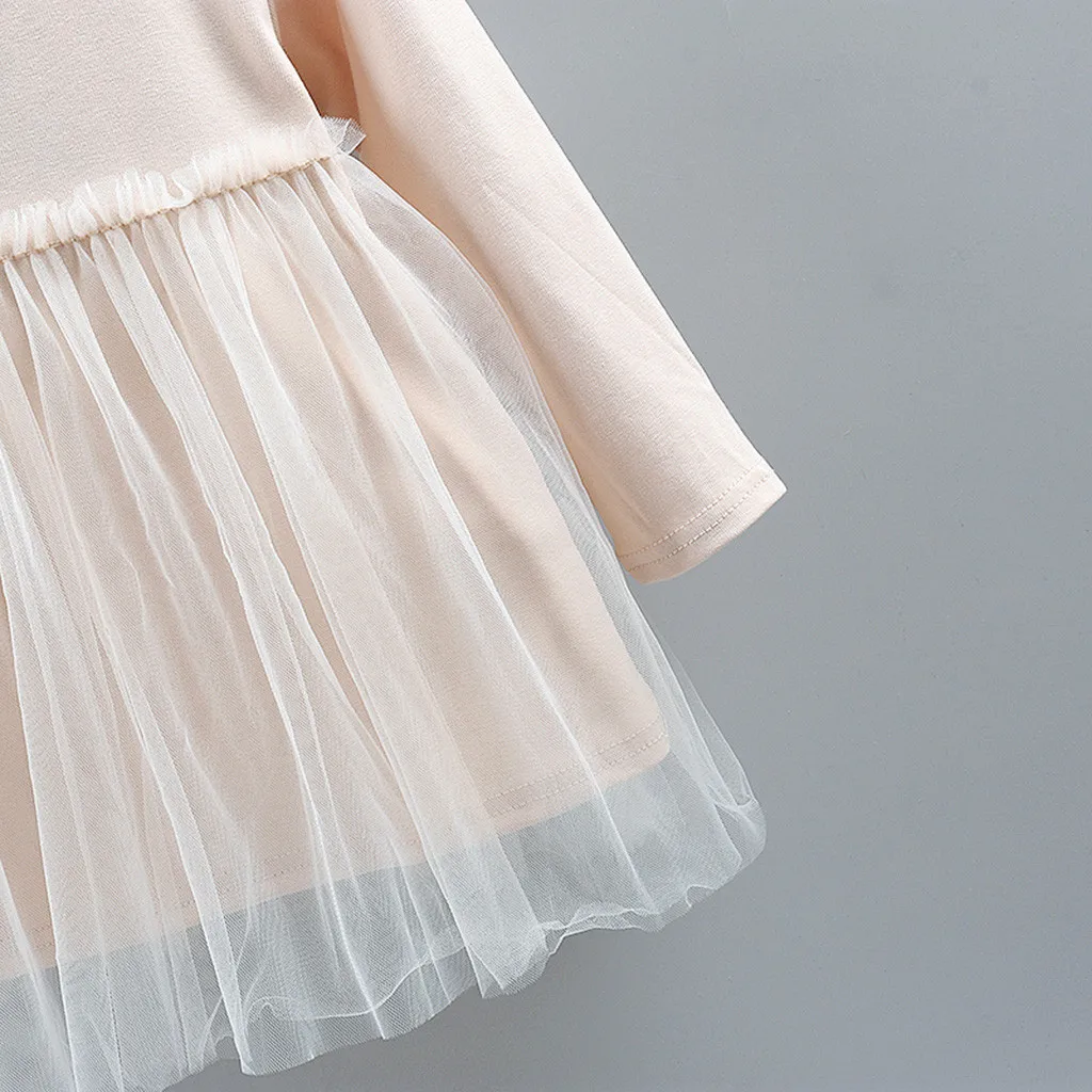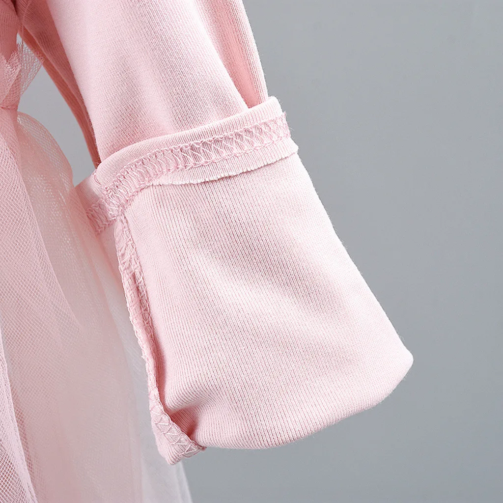 Осенние корейские платья для девочек, маленькие, свежие, детские, с длинными рукавами, с цветочным рисунком, однотонные, сетчатые, имитация двух частей, платье, одежда 50 *