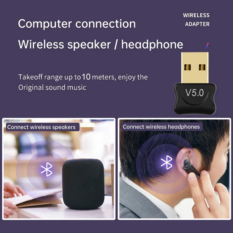 <Bluetooth 5,0: Стандартный USB 5,0 адаптер делает компьютер иметь Bluetooth приемник функция, легко Увлекается музыкой и многое другое.
