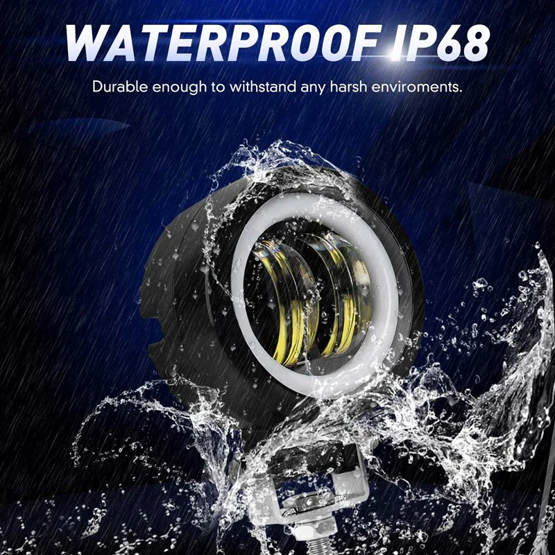 Фара мотоцикла светильник светодиодный противотуманный светильник 3 дюйма 40 Вт круглый синий Ангел глаз DRL белый светильник 10-80 в DC 8000LM внедорожник МОРСКОЙ Wate