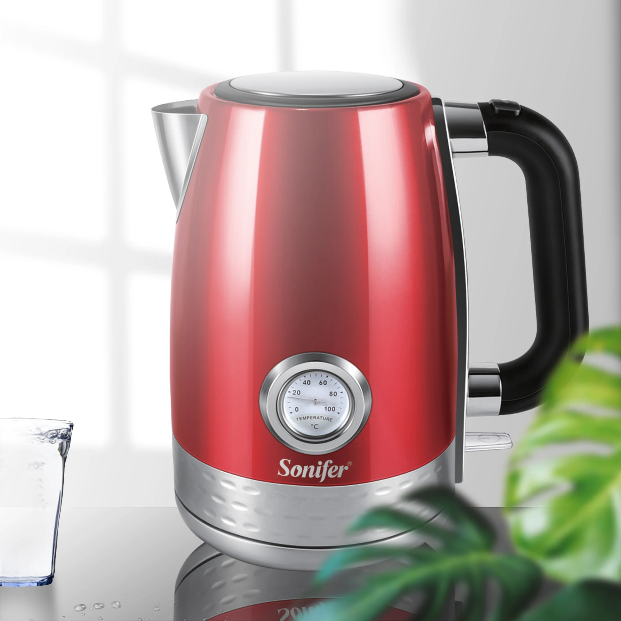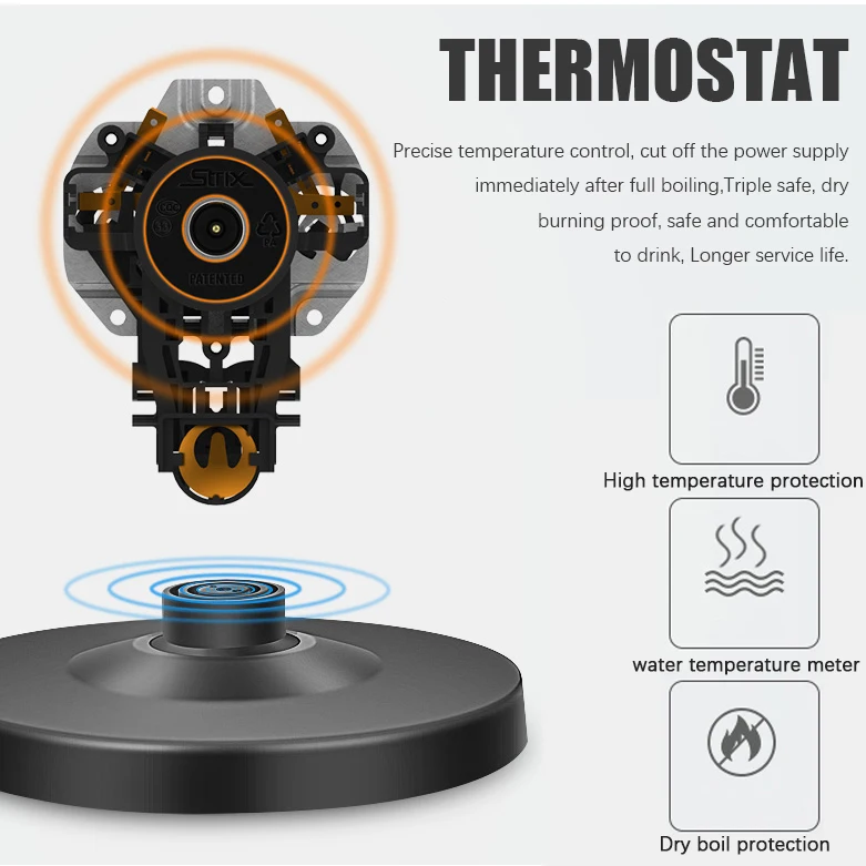 1.7L высокомощный бытовой электрический чайник из нержавеющей стали с счетчиком температуры воды