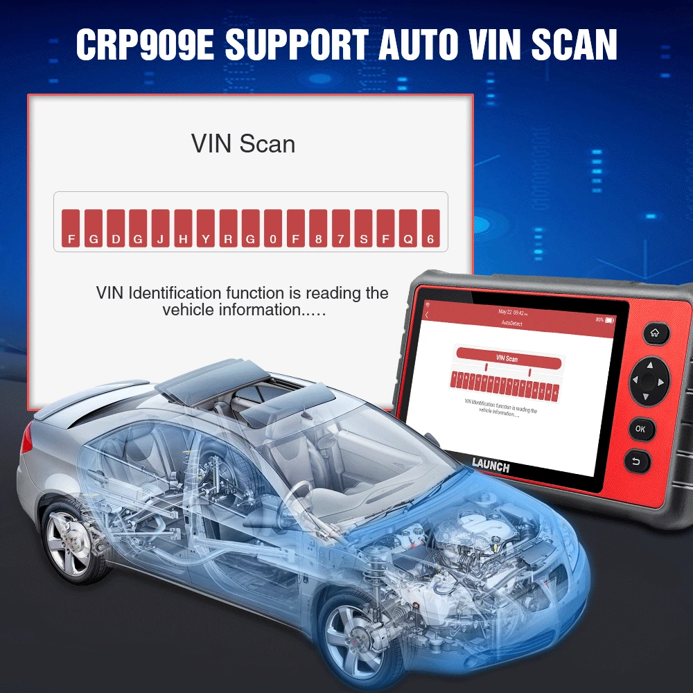 Функция запуска CRP909E1. Профессиональное быстрое определение номера вина:После подключения к автомобильному порту OBD2 CRP909E автоматически обнаружит номер автомобиля Vin. Дайте вам быстрый доступ, чтобы начать Обнаружение системы транспортного средства.