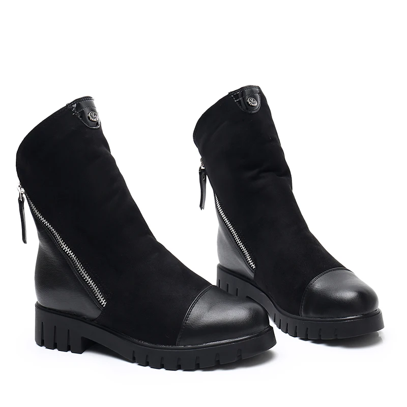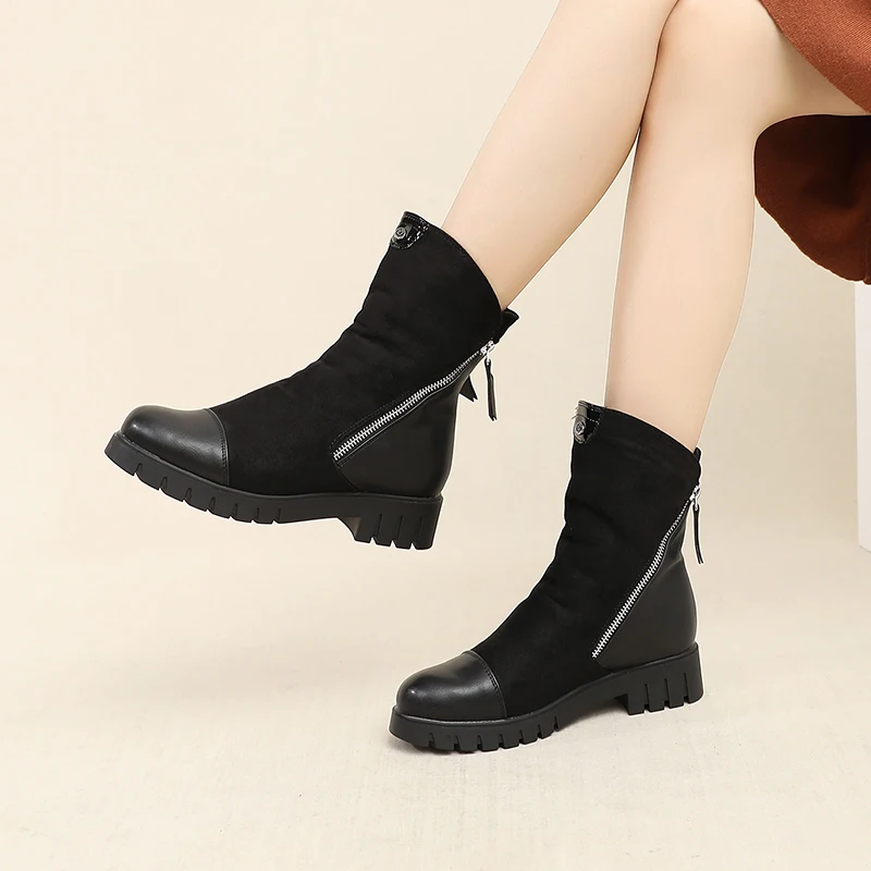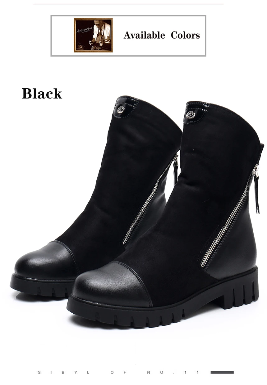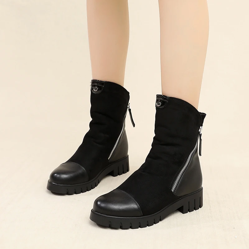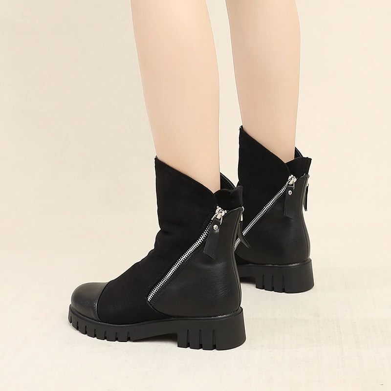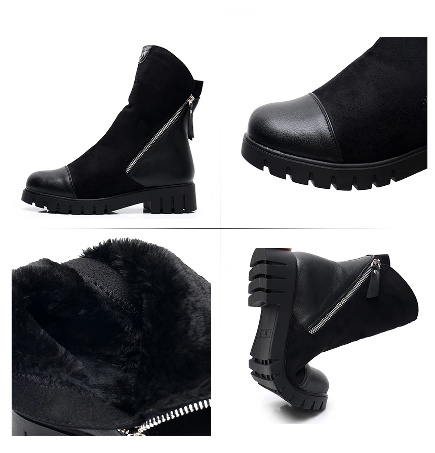 Description: Women Winter Boots Ladies Double Zippers Thick Fur Warm Ankle Boots Women Winter Suede Leather Boots Women Low Heels Thick Sole Basic Botas Mujer High Quality Women Boots