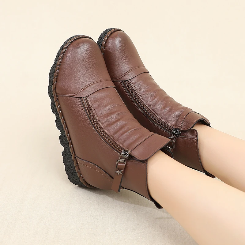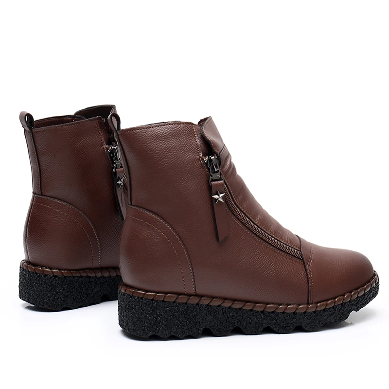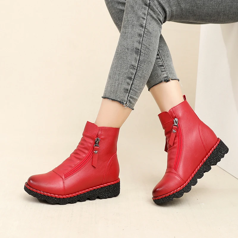Описание: Женские зимние ботильоны; Теплые женские ботинки на меху с двойной молнией; Модная стильная женская зимняя обувь на платформе и танкетке; Женские ботинки высокого качества