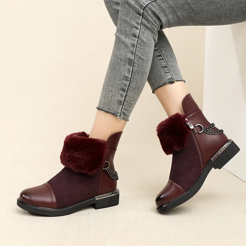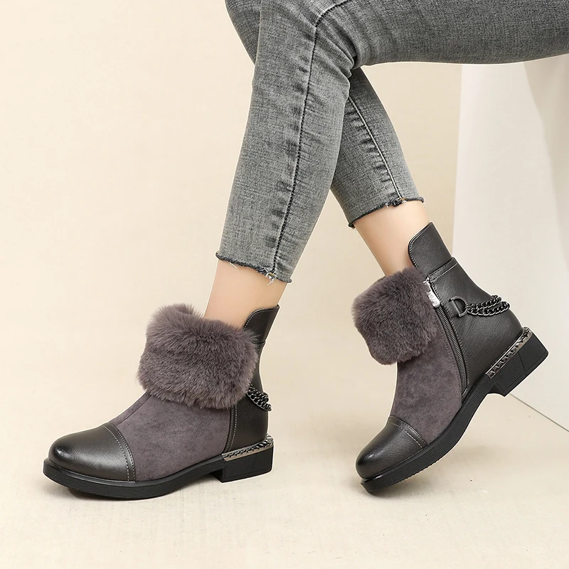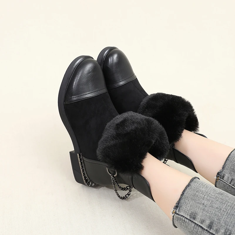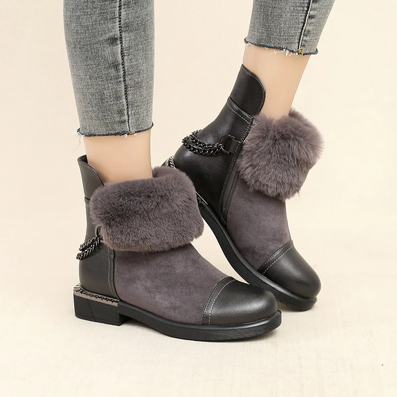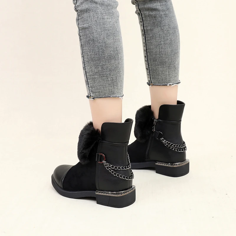 Описание: Женские зимние ботинки; Женские Теплые ботильоны на молнии с толстым мехом; Женские зимние замшевые кожаные ботинки; Женские базовые ботинки на низком каблуке с толстой подошвой; Botas Mujer; Высококачественные женские модные ботинки