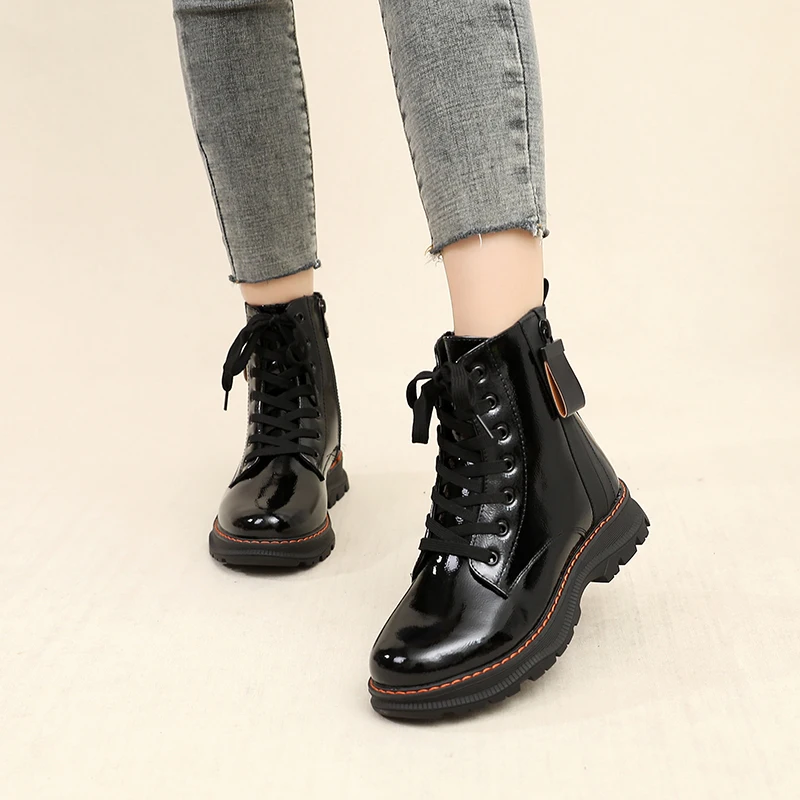 Описание: Женские ботильоны; Женские мотоциклетные ботильоны; Модные стильные зимние ботинки на низком каблуке; Модные женские ботинки; Женские байкерские ботинки из лакированной кожи на толстом меху; Женские модные ботинки высокого качества