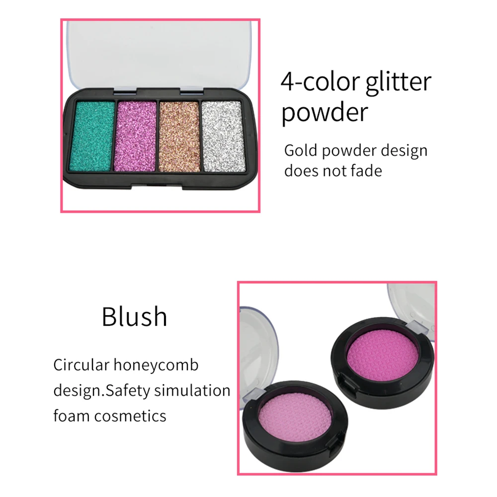 Это настоящий детский набор для макияжа, предназначенный для девочек, чтобы одеваться, вдохновляя воображение и творческую игру. Этот набор моется, безопасен, нетоксичен и мягкий для кожи, который является игрушкой для девочек, чтобы быть красивой принцессой.