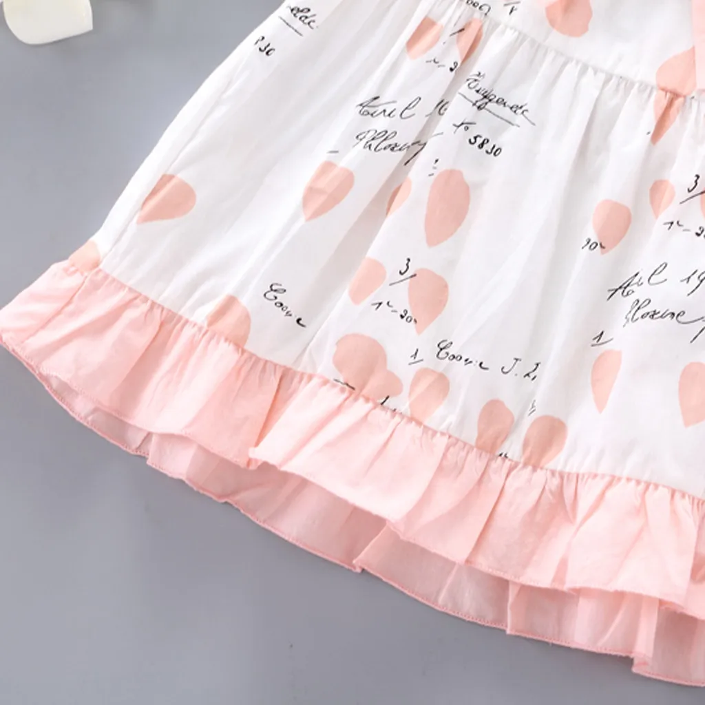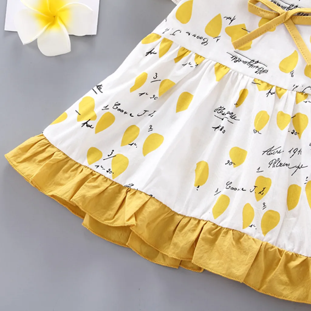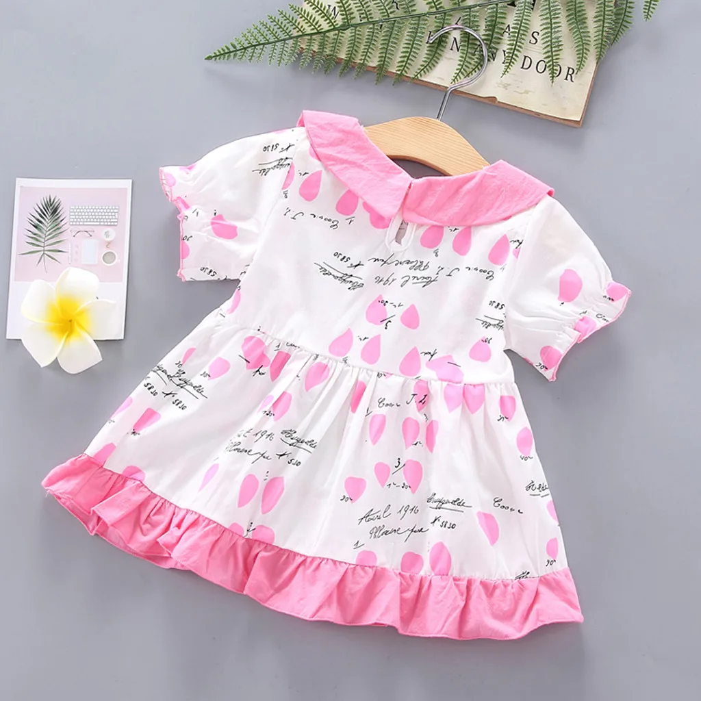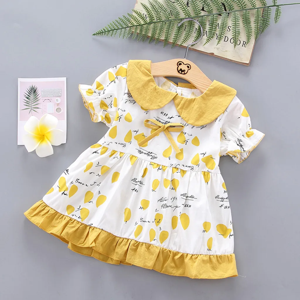 Новое платье для маленьких девочек в Корейском стиле летнее милое платье принцессы с короткими рукавами и кукольным воротником, бантом и буквенным принтом, 50