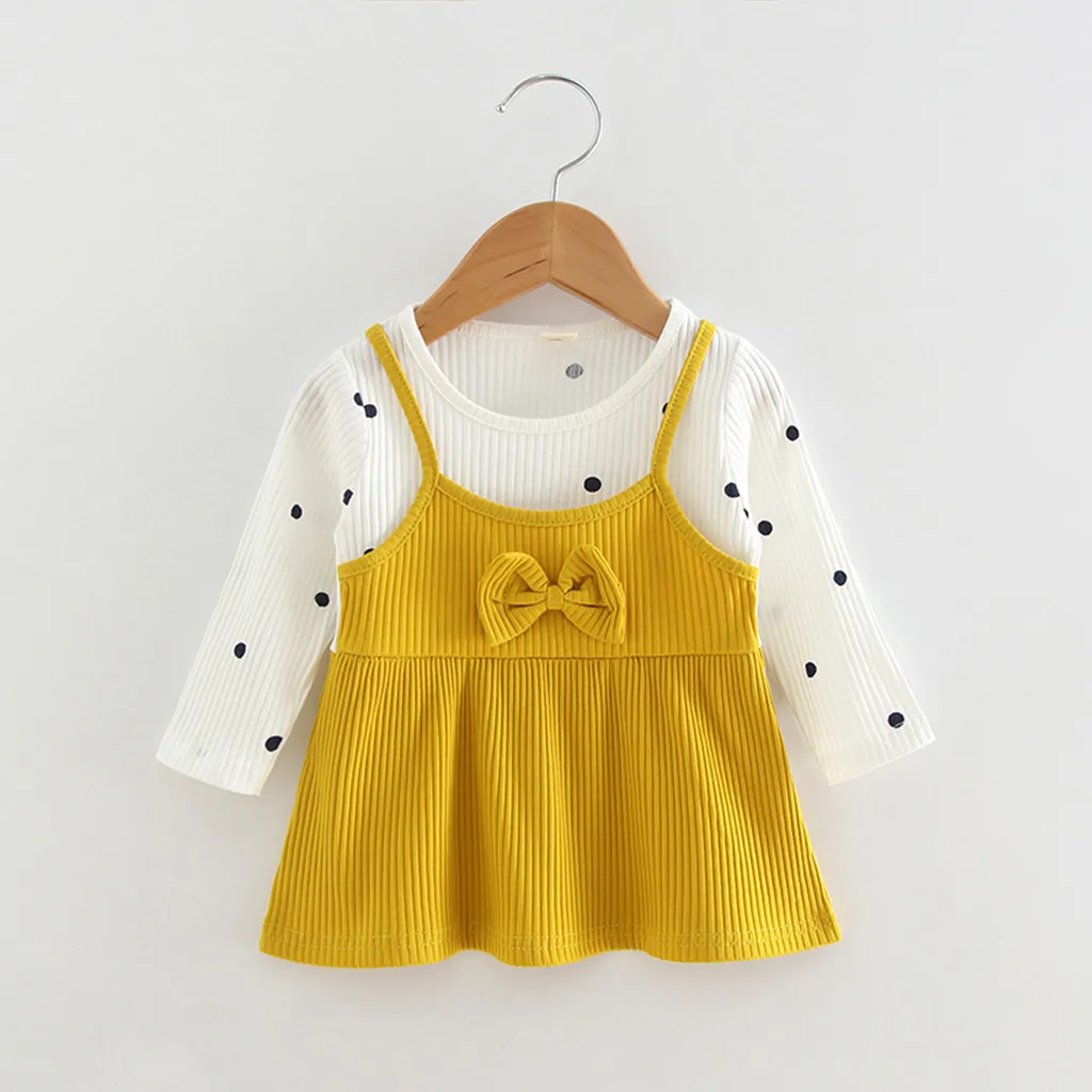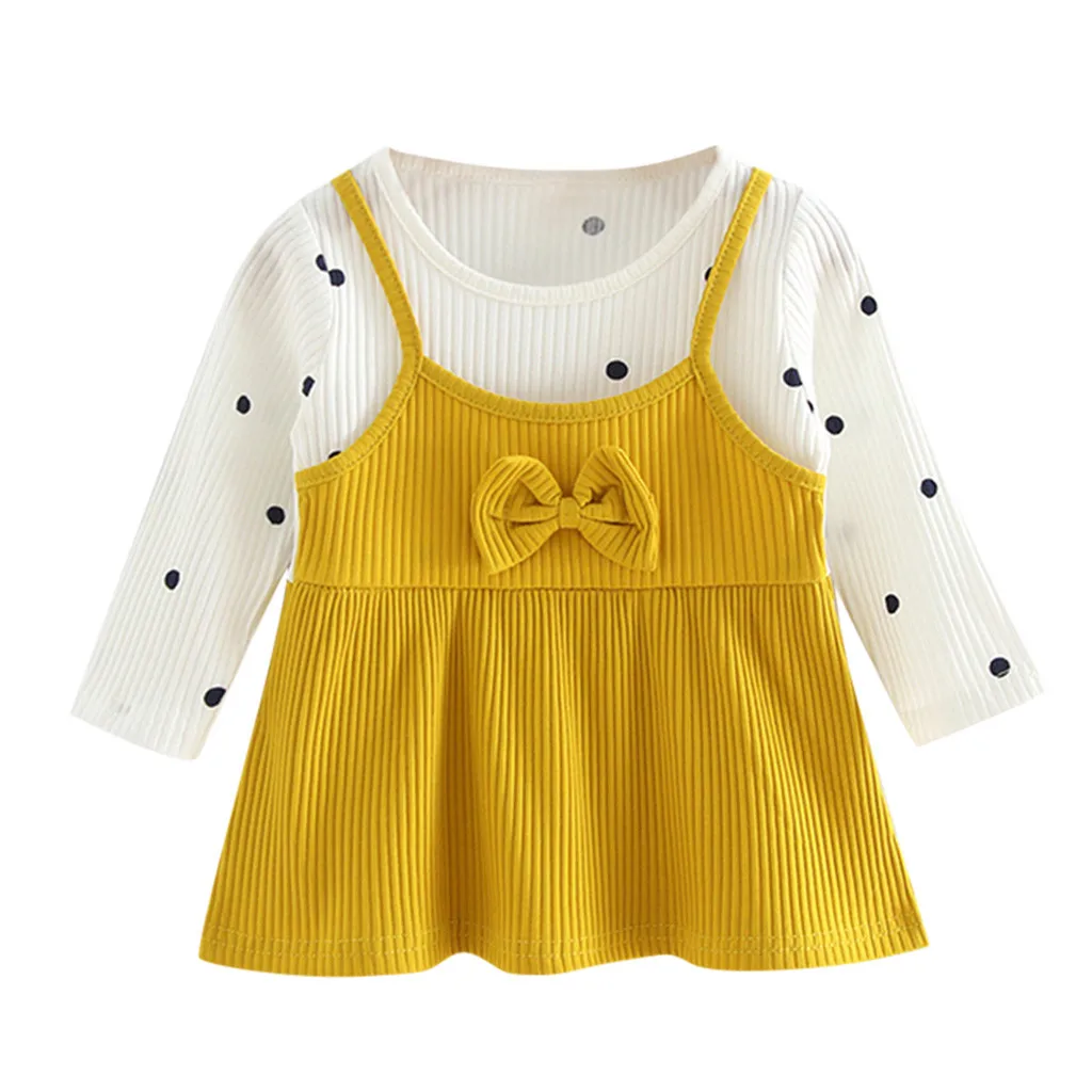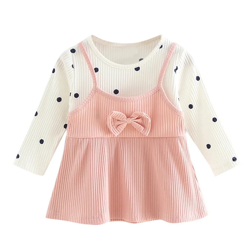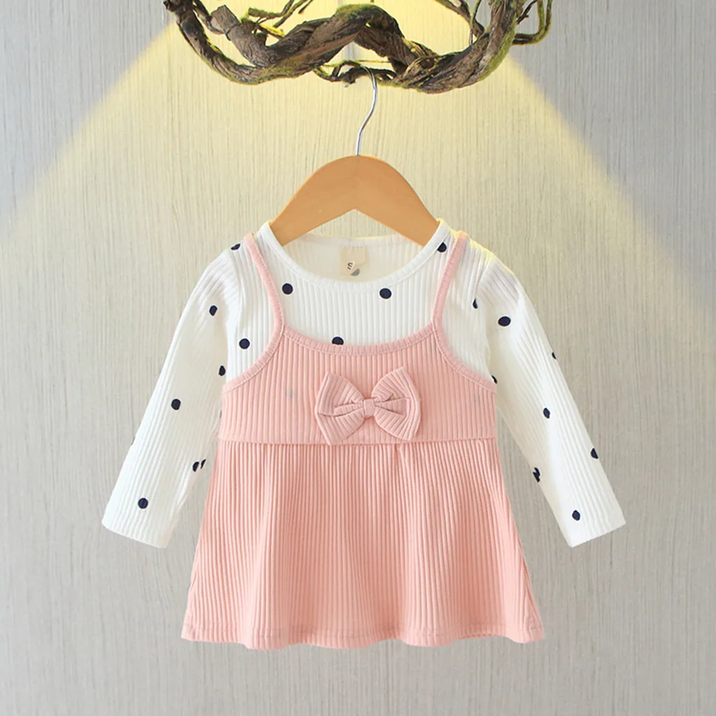 Корейские платья для девочек, модное платье в горошек с длинными рукавами и фальш-вставкой, весенне-осеннее платье, одежда 50 *