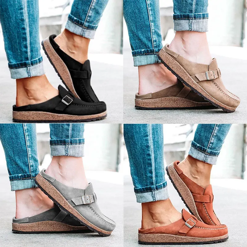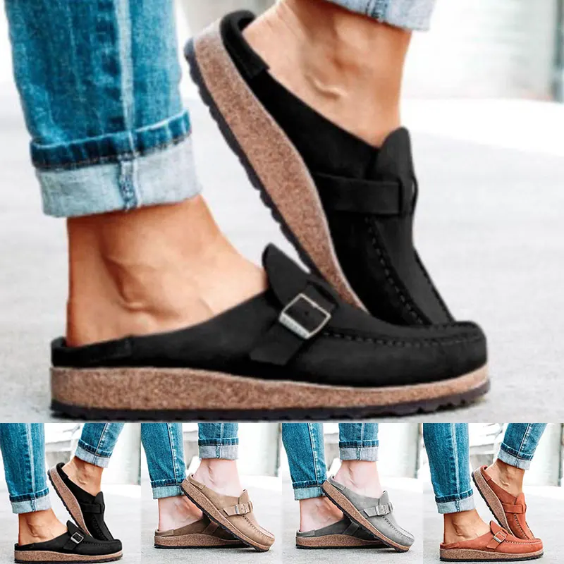 Женская обувь; Удобные классические сандалии с круглым носком на низком каблуке; Повседневные Дышащие Тапочки