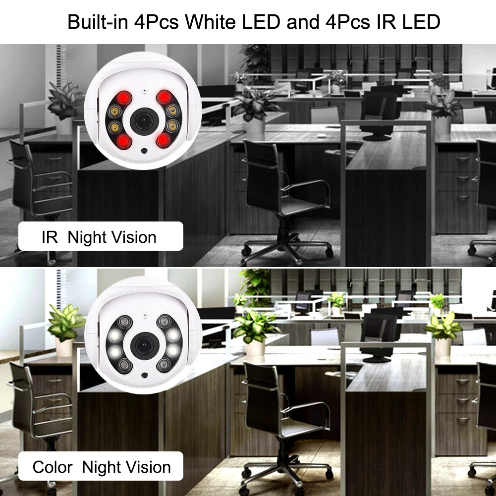 -Интеллектуальное панорамирование/наклон вращается на 320 градусов по горизонтали и 75 градусов вверх и вниз, с полным покрытием видео вверх, вниз, влево и вправо.