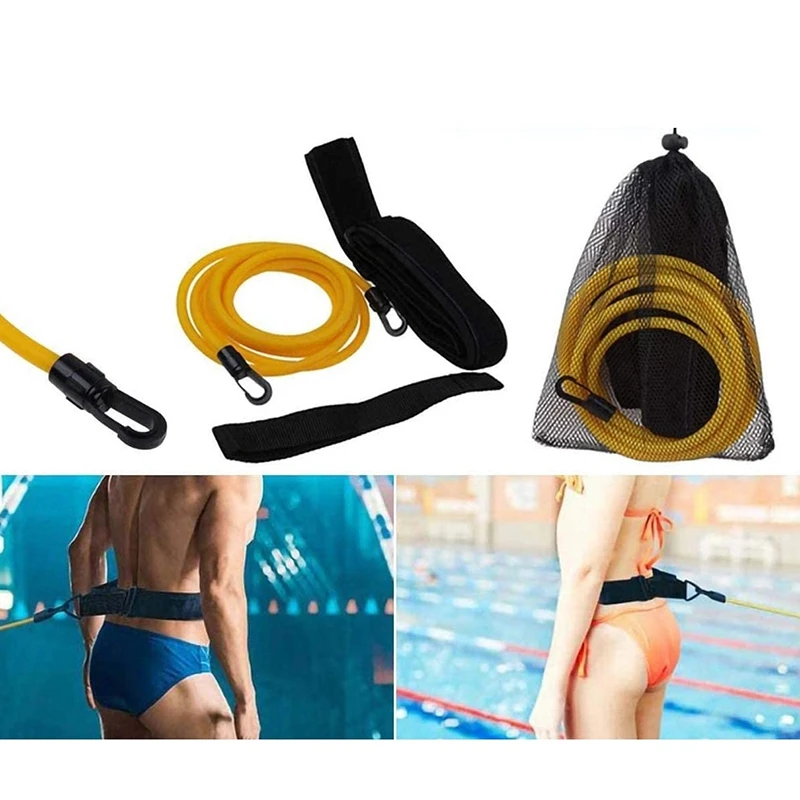 Регулируемый эластичный пояс для обучения плаванию для взрослых детей, тренажер для плавания, поводок, сетчатый карман, безопасная веревка для плавания, аксессуары для бассейна
