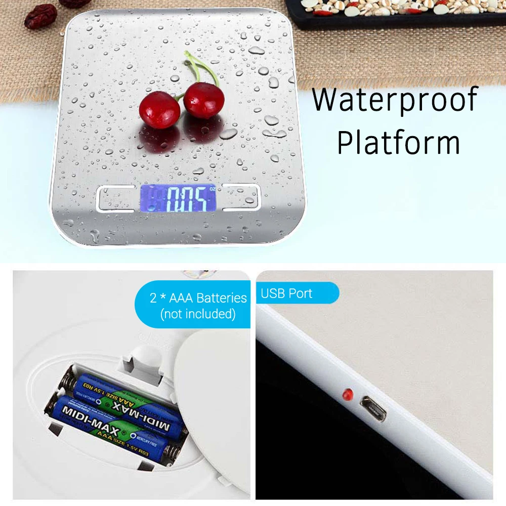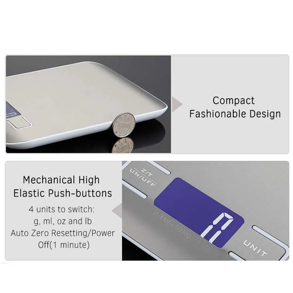 4 единицы для переключения: g, ml, oz и lb. Многофункциональные весы для взвешивания воды, овощей, фруктов, порошков, яиц и т. д.