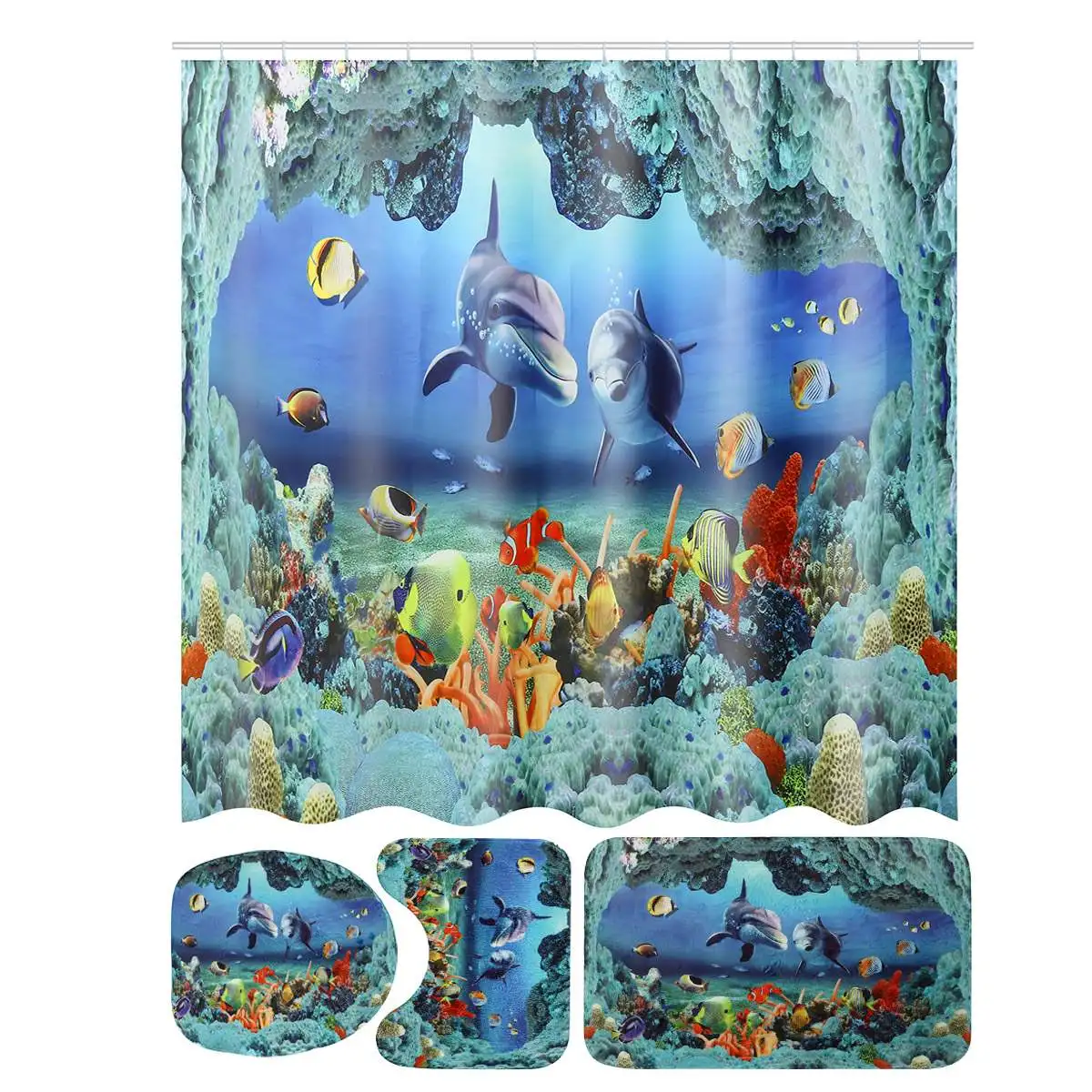 Набор занавесок для душа с принтом дельфина, коврик для унитаза, нескользящий коврик для ванной комнаты, набор ковриков