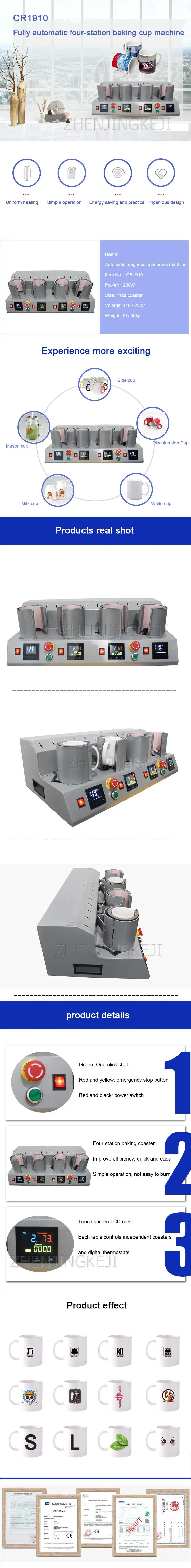 Model: CR1910 Voltage: 220V Power: 1200W Net weight: 50KG Gross weight: 60KG Product size: 930 * 450 * 380MM Coaster size: 110oz coaster Type: Cup baking machine Scope of application: Mug