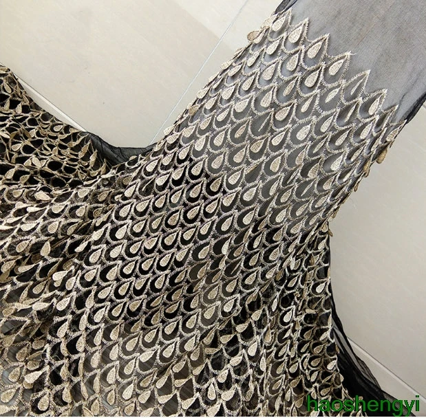 Взрывная водная капля активность цветок золотой шелк вышивка динамическая кружевная одежда ткань
