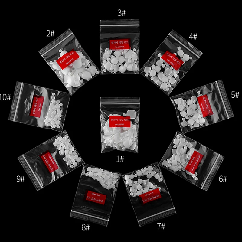 В этой упаковке есть 500 половинных наконечников для ногтей, 50 наконечников каждого размера.