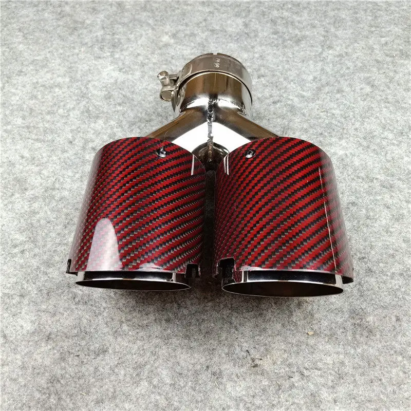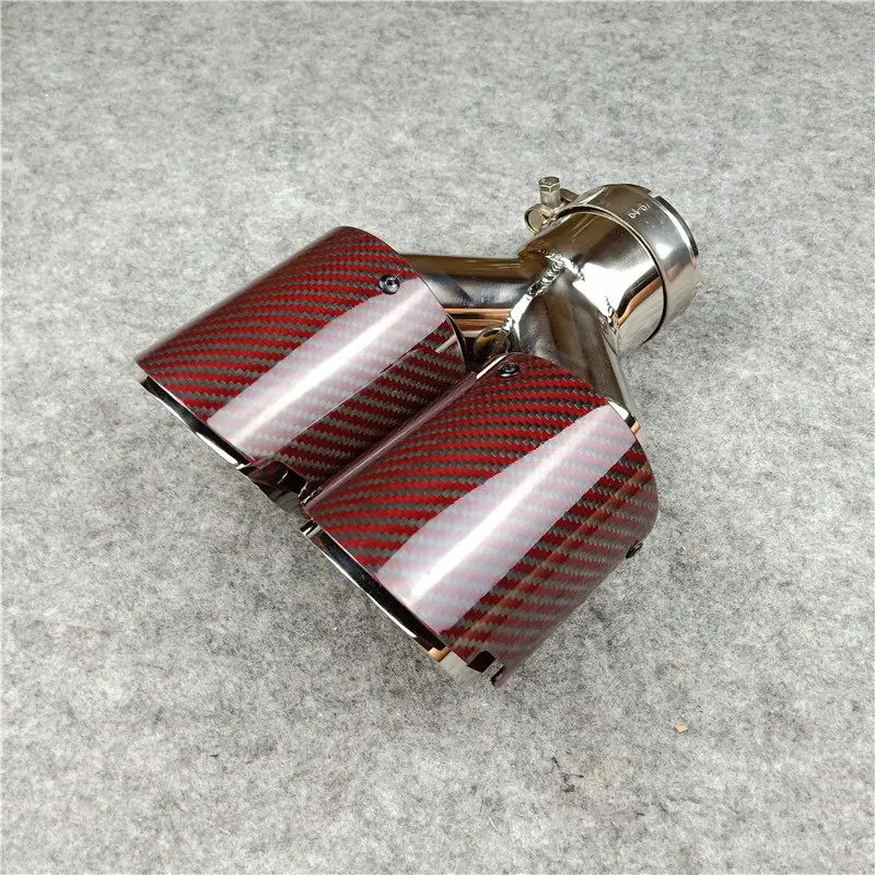 1 шт Y стиль автомобиля выхлопные двойные трубы с блестящим красным углеродным волокном и серебряной нержавеющей стали для всех автомобилей