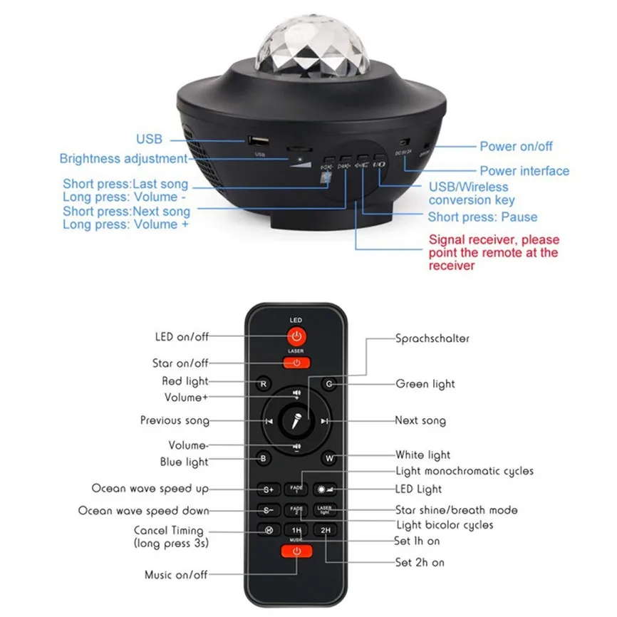 [Фантастическое Освещение шоу] прекрасные волны океана и звездное небо на потолке и стене приносят вам приятную среду с музыкой после однодневной работы, романтическая ночь creat с мягким рисунком для влюбленных и особенно может принести комфортное здоровье для сна для детей и взрослых. Идеально подходит для свадьбы, дня рождения, вечеринок, дома, спальни. (Рекомендуемое расстояние определения pr: 3-5 м.)