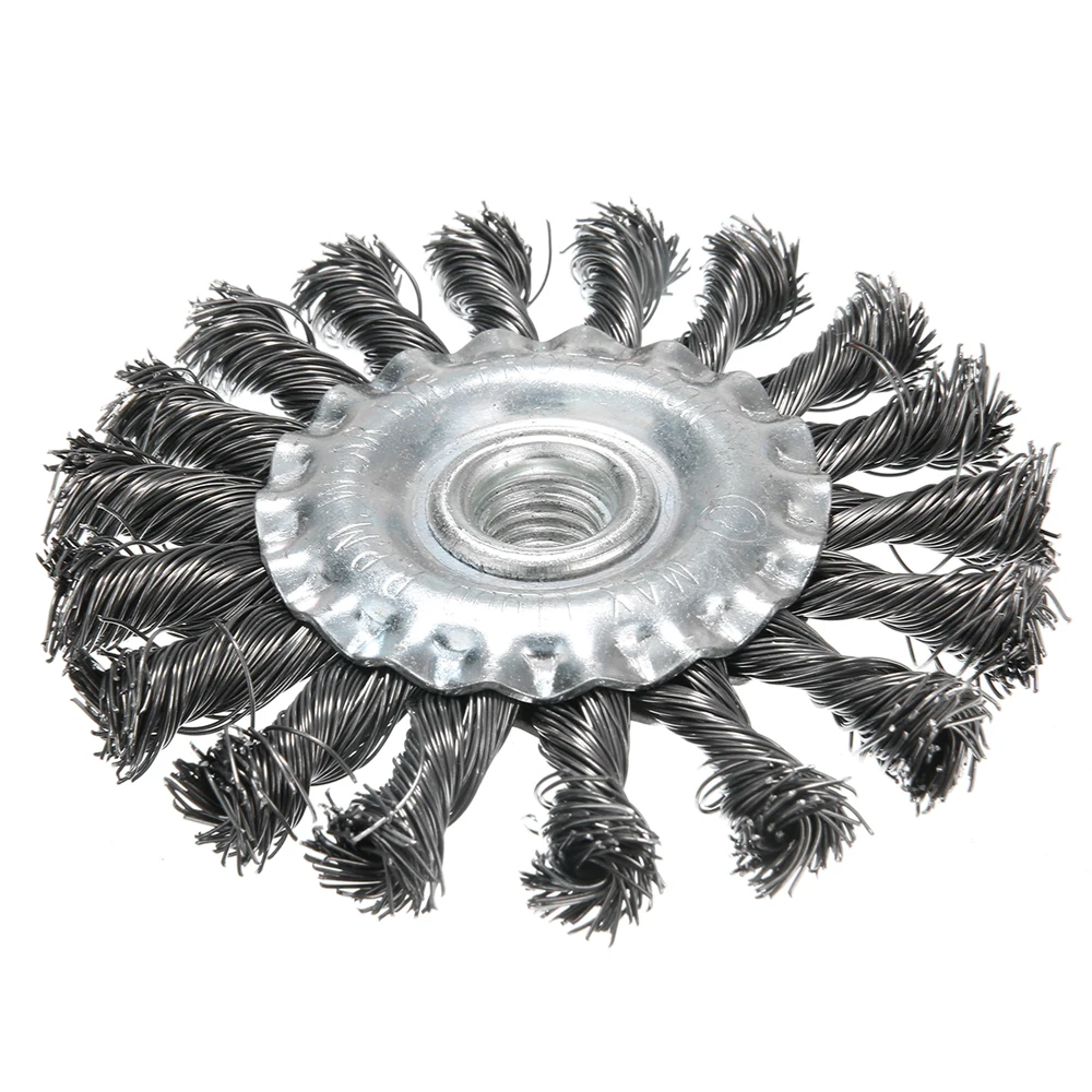 Угловая стальная проволочная щетка подходит для очистки отливок, конструкционной стали и листового металла.