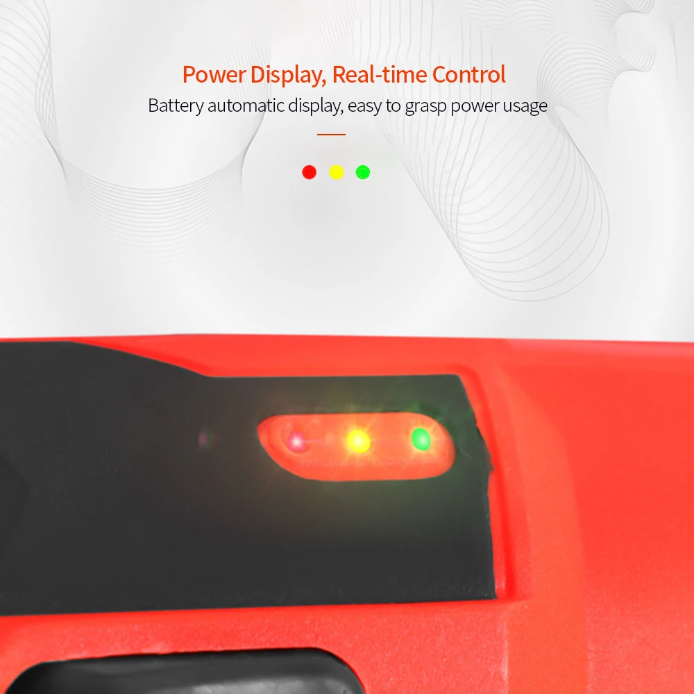 Этот мощный двигатель обеспечивает до 60 нм крутящего момента эффектную производительность, если Вы рассматриваете его компактный размер и гибкий. Нескользящая удобная ручка, двухцветная прорезиненная конструкция, прочная и стильная. Легкий мини-дизайн, удобно работать в различных небольших помещениях. Встроенный СВЕТОДИОДНЫЙ Светильник Освещает темные рабочие пространства. Автоматический дисплей электроэнергии, вы можете узнать использование батареи.