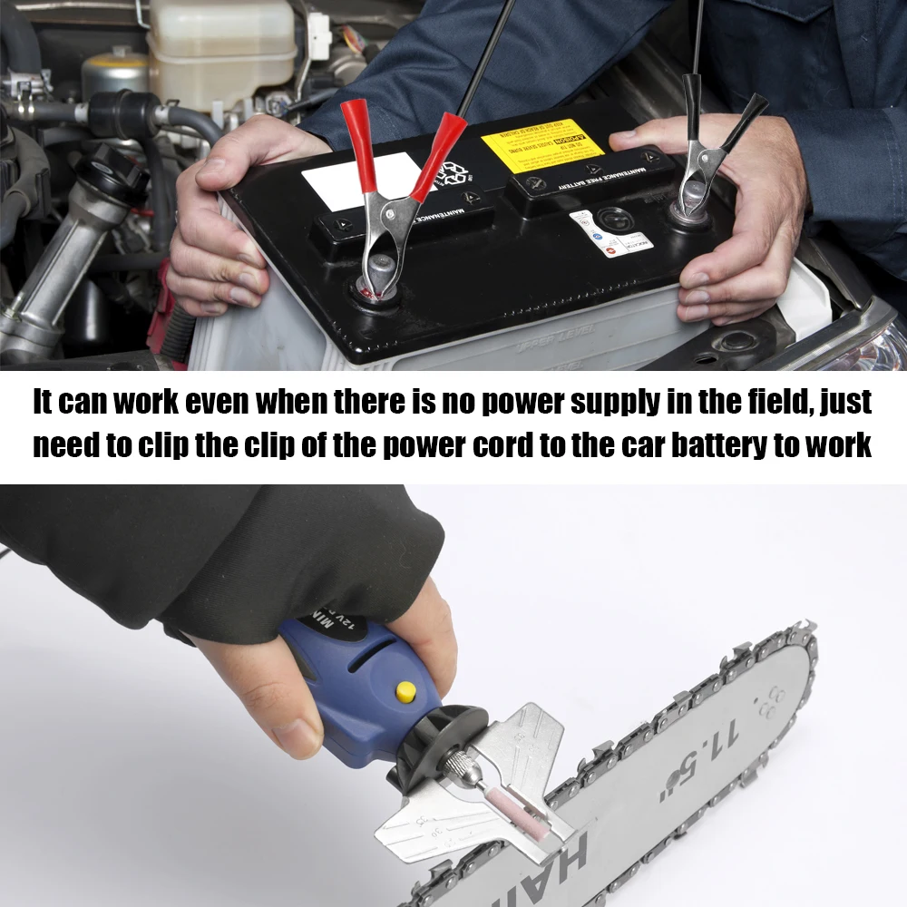 Это мини-электрическая шлифовальная машина, которая может быть подключена к мобильному блоку питания 12 В. Он может работать, даже если в этой области нет источника питания, просто нужно прикрепить зажим шнура питания к батарее автомобиля для работы. И его легко использовать, не снимая цепь во время шлифования.