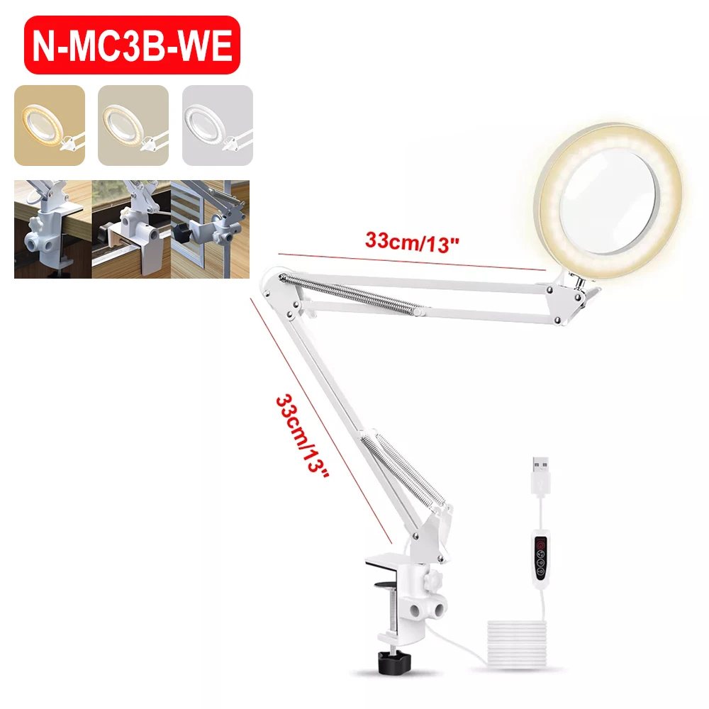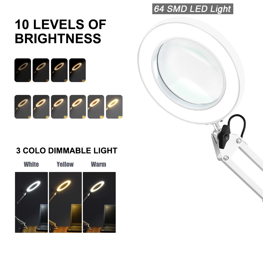 4. Увеличительное стекло светодиодный светильник кой, цветовую температуру светильник Ки можно регулировать в 3 шага, а яркость регулировать в 11 шагов, она может удовлетворить различные рабочие условия.