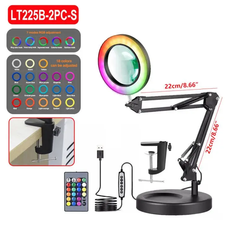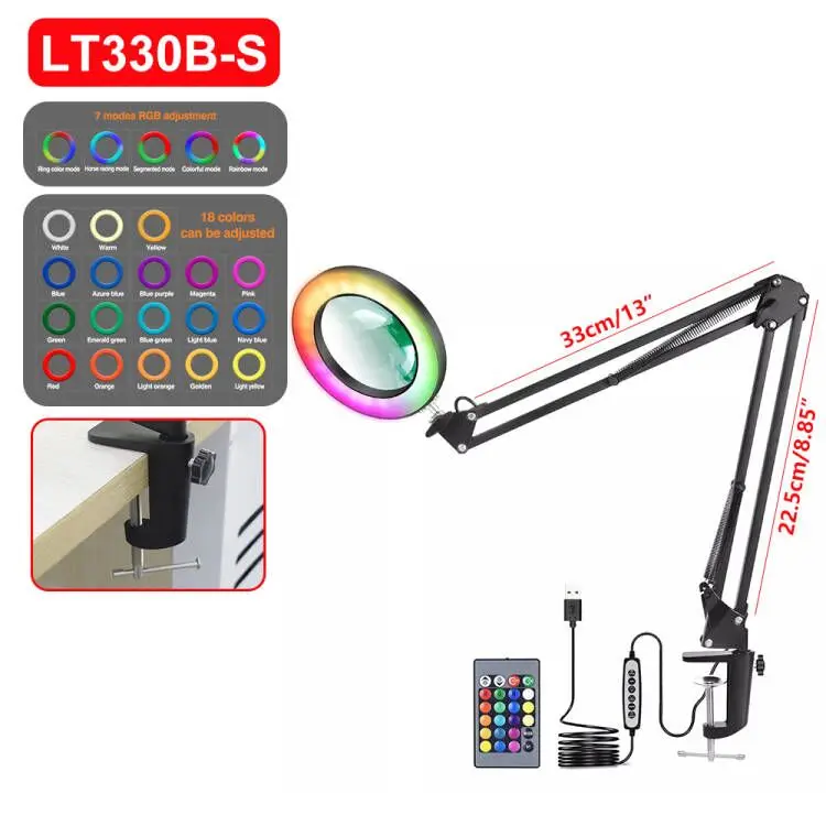2.18 цветной Регулируемый светодиод 8 Вт настольная лампа 7 RGB пульт дистанционного управления осветительный инструмент для макияжа ногтей Чтение 5X Увеличительное стекло рукоделие Хобби DIY сварочные работы