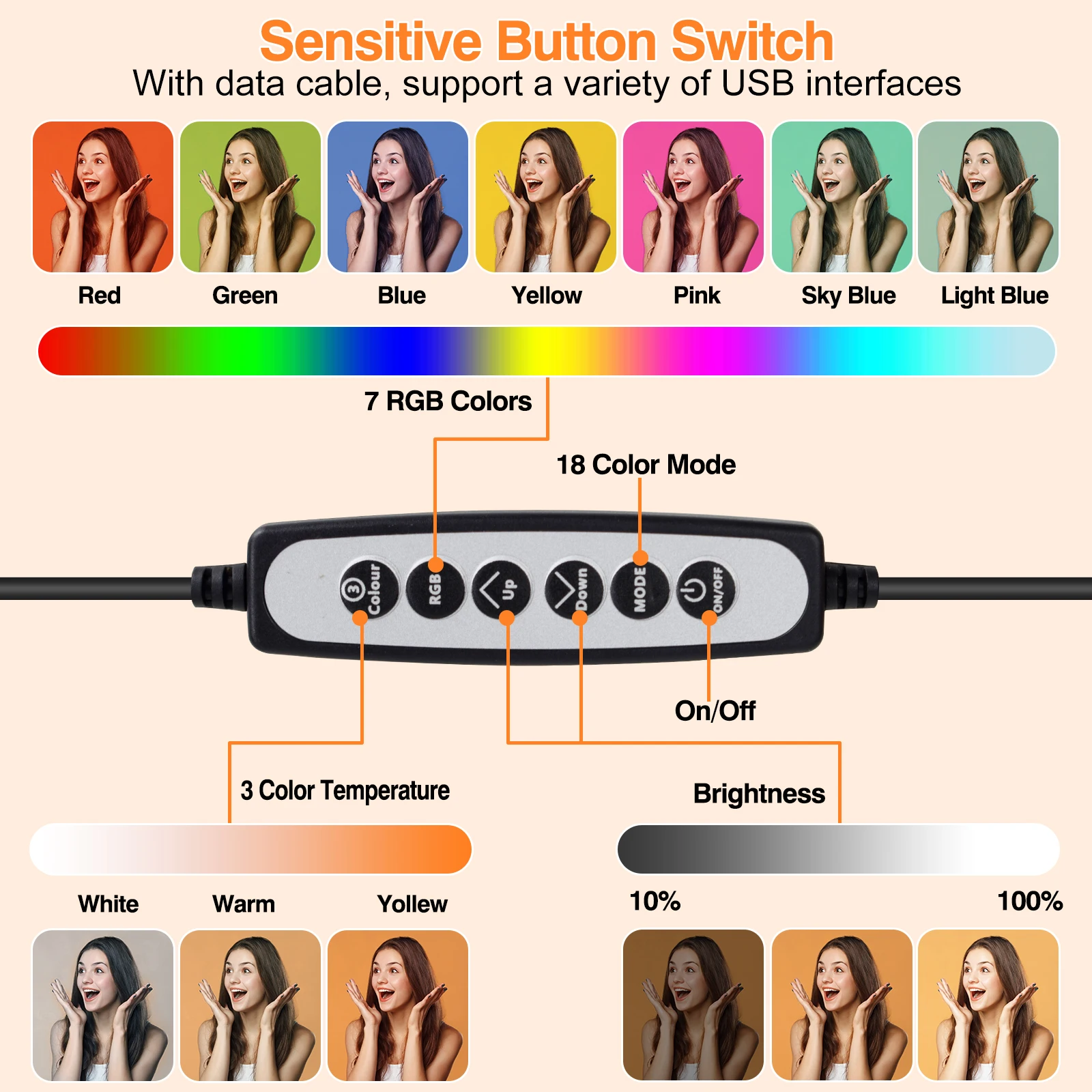 Цвет светодиодный светильник 18 цветов