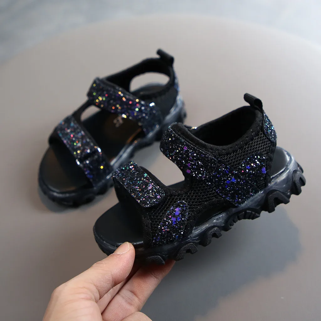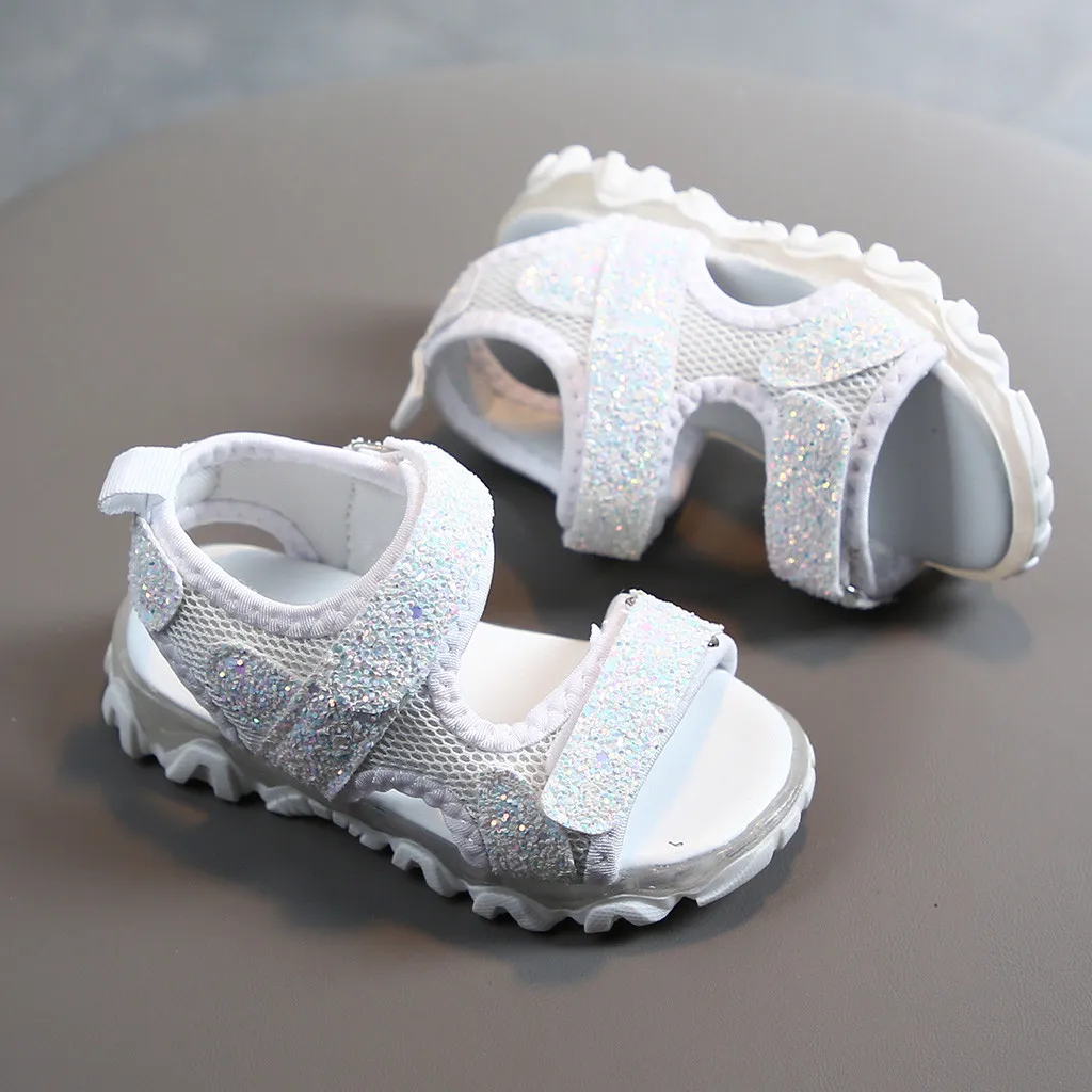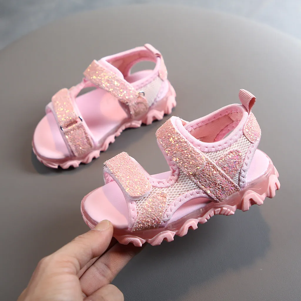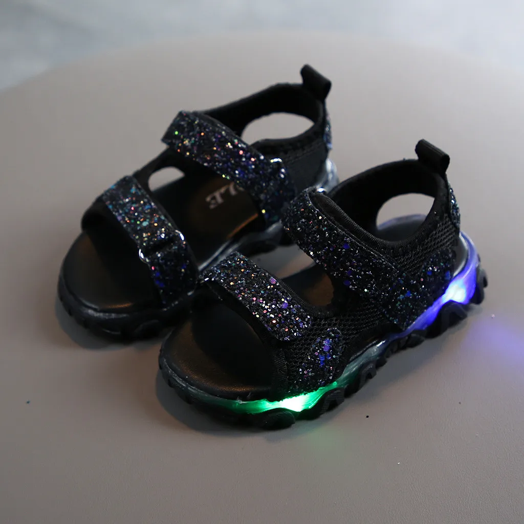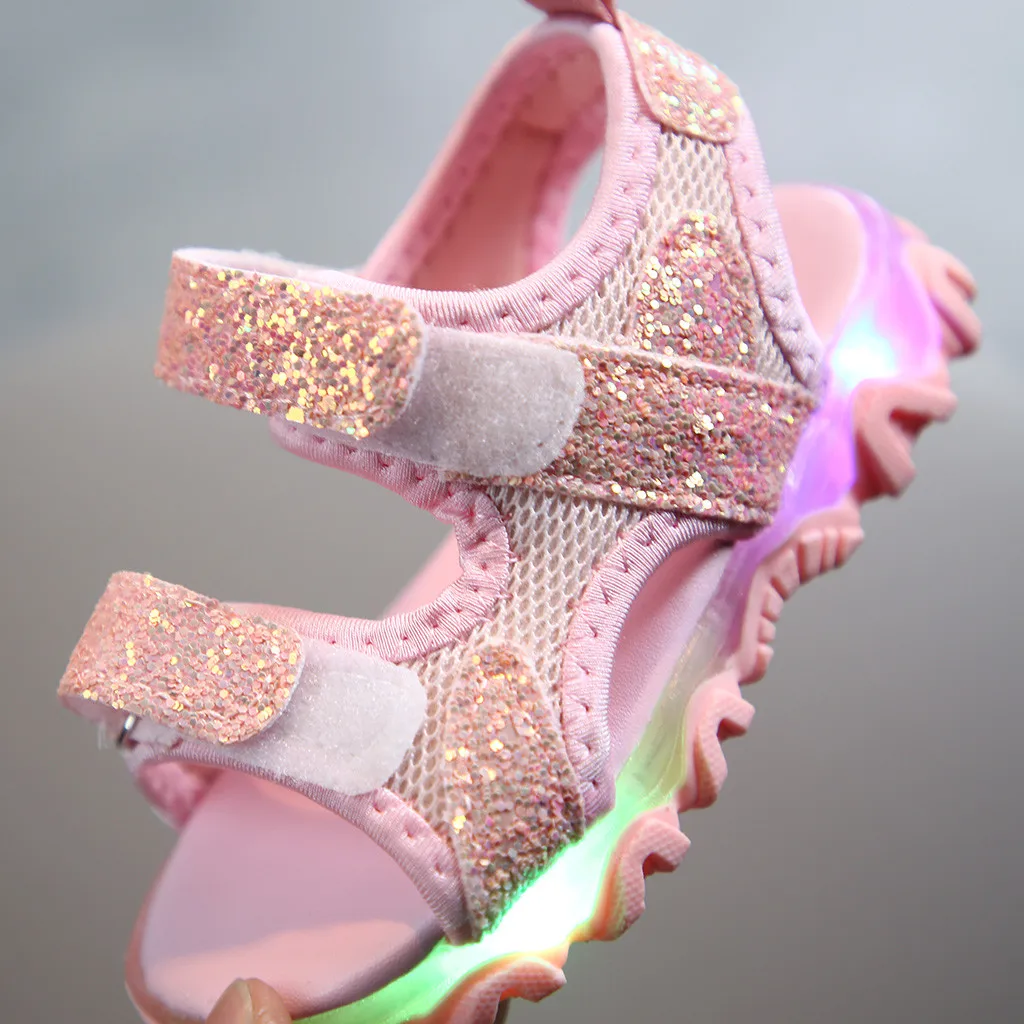Детский Блестящий светодиодный светильник для маленьких мальчиков и девочек; Светящиеся спортивные сандалии