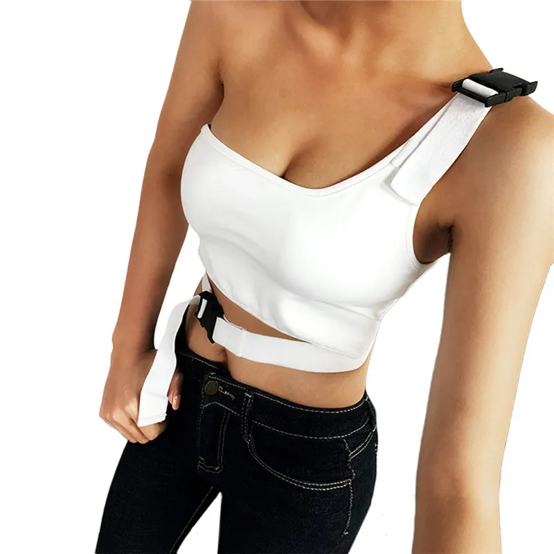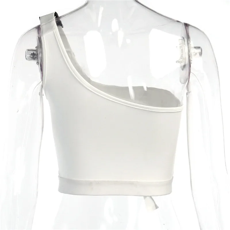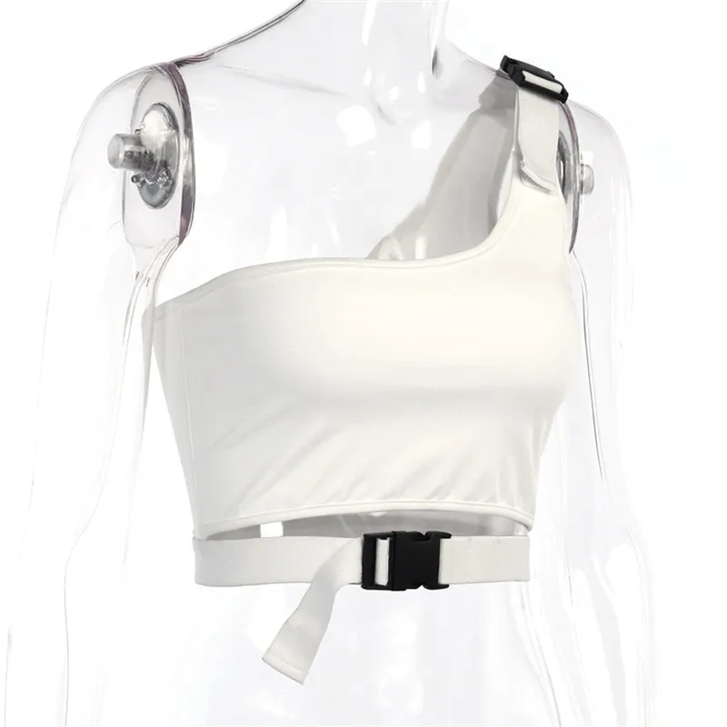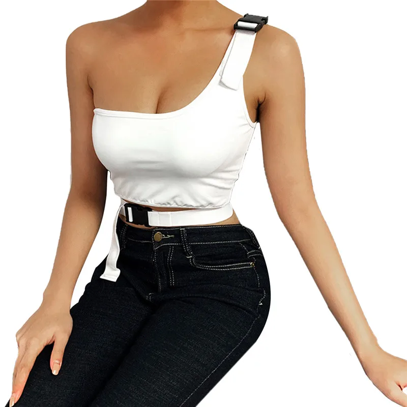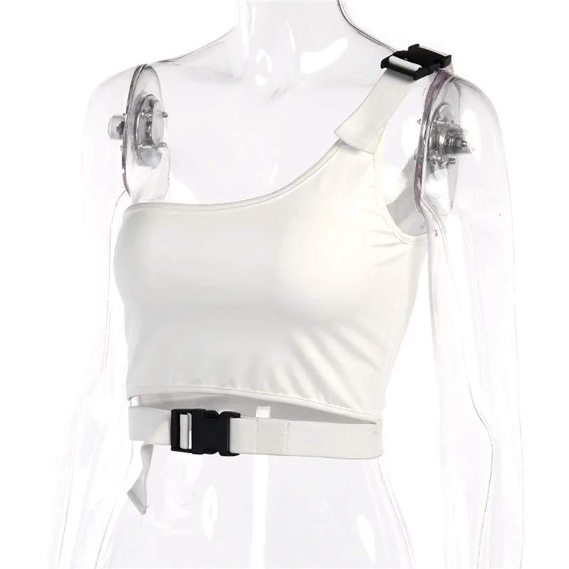 Женские летние однотонные укороченные женские топы на бретельках с пряжкой и вырезами на одно плечо, повседневная одежда, уличные обтягивающие Adjustale 2020