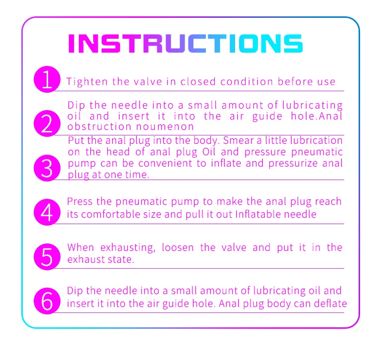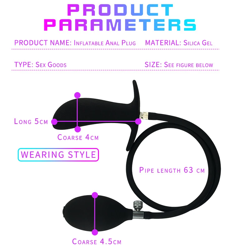 Водонепроницаемый и легко чистится; Нейтральный-подходит для мужчин и женщин; Гладкая поверхность, быстрый отек после давления, позволит вам чувствовать себя полными любви; Воздушный Мешок медленно расширяется до тех пор, пока он не будет комфортным, коэффициент безопасности может достигать 11 см, больше, чем кулак. Вы можете попробовать, достаточно весело. Использование качественного силикона, без неприятного запаха, удобный и гигиеничный, нетоксичный и безвкусный, Безопасный в использовании; Надувной дизайн, один размер подходит всем, его поверхность очень гладкая, легко вставляется, размер может быть изменен. Дополнительный насос позволяет контролировать ваше счастье, приносит вам сильное удовольствие; Надувная труба может быть съемной, и вы можете носить ее для покупок, занятий спортом и плавания. Наслаждайтесь анальным расширением в любом месте и в любое время; Если вы хотите сдуть, вставьте надувную трубку и поверните столешницу клапана
