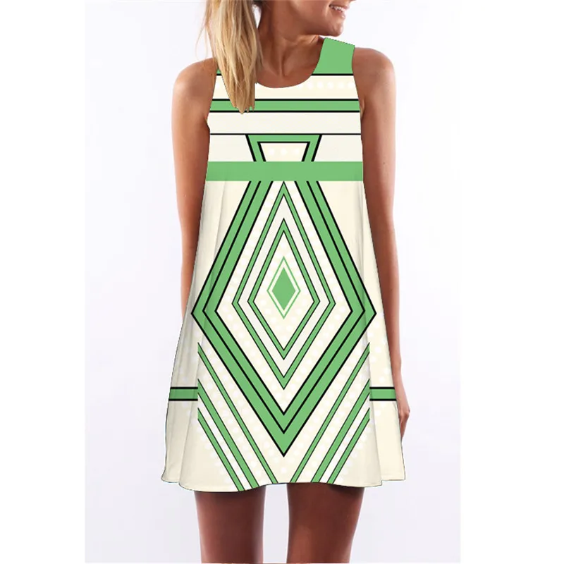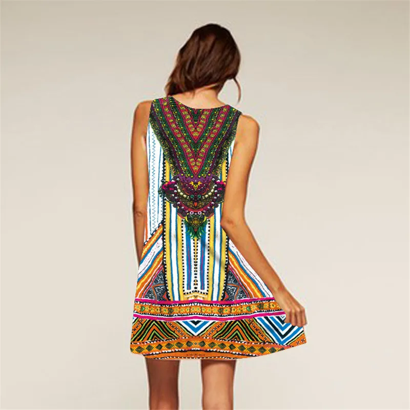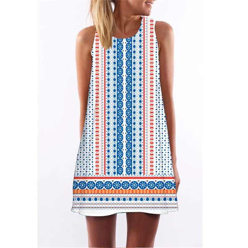 Новое модное женское летнее платье Boho 2020 без рукавов с цифровой печатью, винтажные вечерние платья для пляжа, сексуальное мини-платье