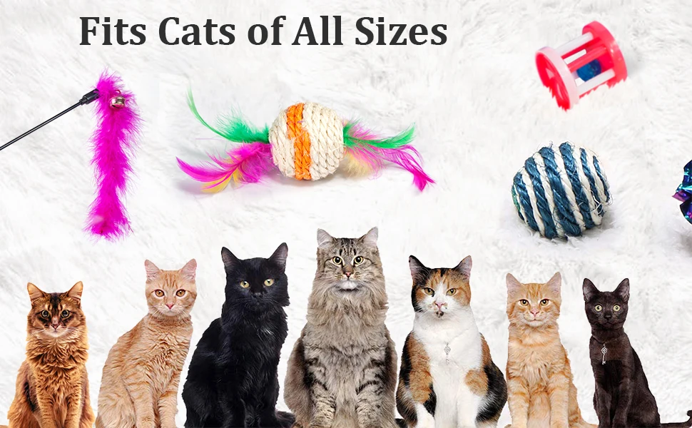 Этот разнообразный комплект игрушек подходит всем кошкам, он обеспечивает часами упражнений и развлечений для вашей кошки. Это лучший праздник и подарок на день рождения для вашей кошки и всех любителей кошек.