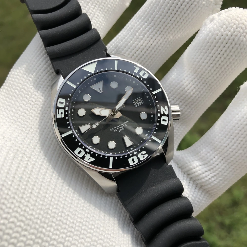 Код проекта: SD1971 Бренд: STEELDIVE/стальной Дайвинг Тип движения: автоматическое механическое движение Модель движения: Япония NH35 Характеристики движения: 3 стрелки/календарь, частота 21600 раз в час (3 Гц), Устройство остановки, двухсторонняя Автоматическая обмотка, 24 камня, 41 час хранения энергии. Материал чехла: нержавеющая сталь 316L Технология покрытия: Шлифовка/полировка Материал нижней крышки: нержавеющая сталь 316L Тип нижней крышки: Винтовая Нижняя крышка Диаметр корпуса: 44,9 мм Длина чехла: 52,5 мм (общая длина вверх и вниз) Толщина чехла: 14,7 мм (включая настольное зеркало и нижнюю крышку) Чехол для ушей: 20 мм (соединение между чехлом и ремешком) Вес головы: 98 г (без ремешка) Вес всего стола: 119 г (включая резиновый ремешок) Длина Часов: 270 мм (общая длина часов/окружность) Материал ремешка: нержавеющая сталь Материал зеркала: Синтетический сапфир Тип зеркала для стола: один сапфир Покрытие для зеркала стола: Антибликовое голубое покрытие Размер зеркала: 31,00*3,30 мм (диаметр * толщина) Тип головки стержня: винтовой замок Размер головки: 7,0 мм (диаметр) Материал ободка: керамика Особенности ободка: 120 кольцо с зубами одностороннее вращение Безель Светящийся: 240000/кг Швейцарский BGW9 супер светящийся порошок, синий светильник Размер ободка: 40,00*31,40*1,60 мм (внешний диаметр * внутренний диаметр * толщина) Цвет поверхности: матовый черный фон, реальные весы для ногтей Светящаяся Поверхность: 240000/кг Швейцарский BGW9 супер светящийся порошок, синий светильник Размер поверхности: 28,8*28,5*27,5*0,4 мм (проволочное отверстие * лицевой диаметр * открытая лицевая сторона * толщина) Процесс указателя: шлифовальная игла Световой указатель: 240000/кг Швейцарский BGW9 супер светящийся порошок, синий светильник Размер указателя: 8*12,5*12,5 мм (часовая стрелка * минутная стрелка * секундная длина иглы) Водонепроницаемый уровень: 200 метров Водонепроницаемый/дайвинг [можно мыть руки, плавать, нырять, чтобы удовлетворить все ежедневное водонепроницаемое использование] Выпускной клапан: Да Стандарт упаковки: профессиональная Водонепроницаемая пластиковая упаковка
