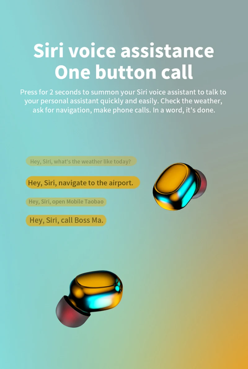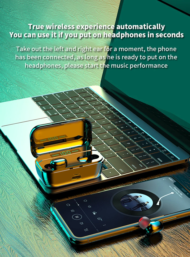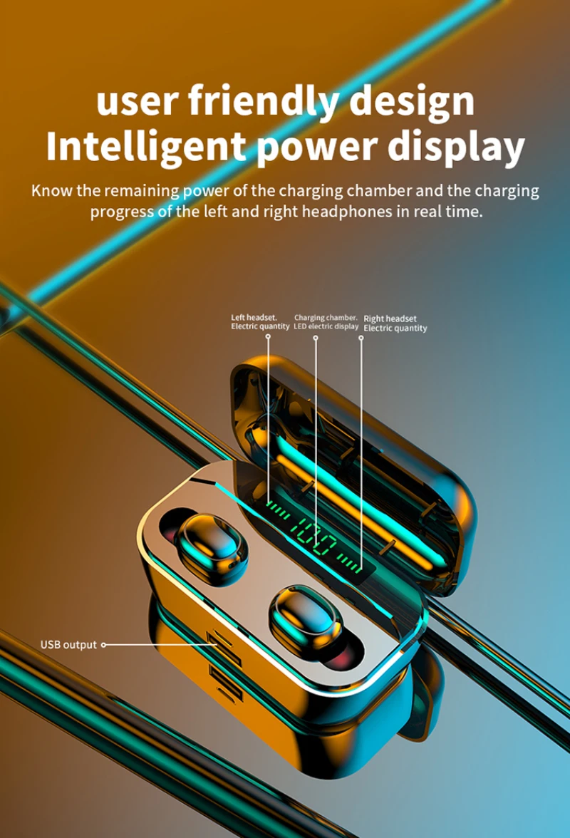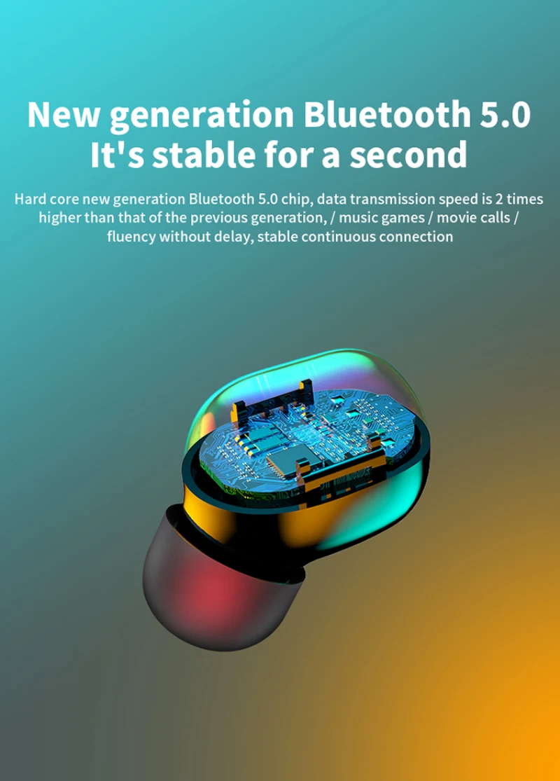 Последняя TWS бинауральная стерео Bluetooth гарнитура с чипом 5,0 дает вам очень эффективную беспроводную производительность.
