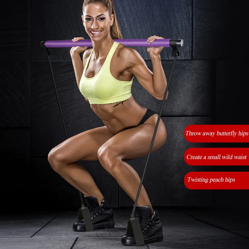 Палка для пилатеса с резистивными лентами Портативный Фитнес Пилатес бар Crossfit Бодибилдинг резиновые трубки ленты Йога упражнения