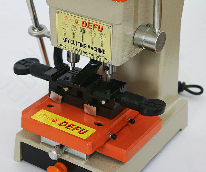 339CМожет копировать различные формы ямы, волнистые, три или четыре одинаковых цилиндрических ключа.339C машина для резки ключей,Патрон является универсальным зажимом, это на один больше, чем модель 368A, что может отрезать цилиндрическую