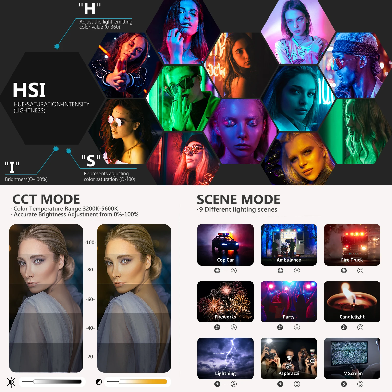Цвет: RGB + двухцветный (холодный цвет + теплый цвет)