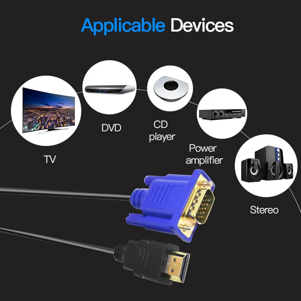 1,8 м HDMI-Совместимость с 15Pin Кабель VGA 1080P видео адаптер кабель со штыревыми соединителями на обоих концах для HDTV проектора Дисплей