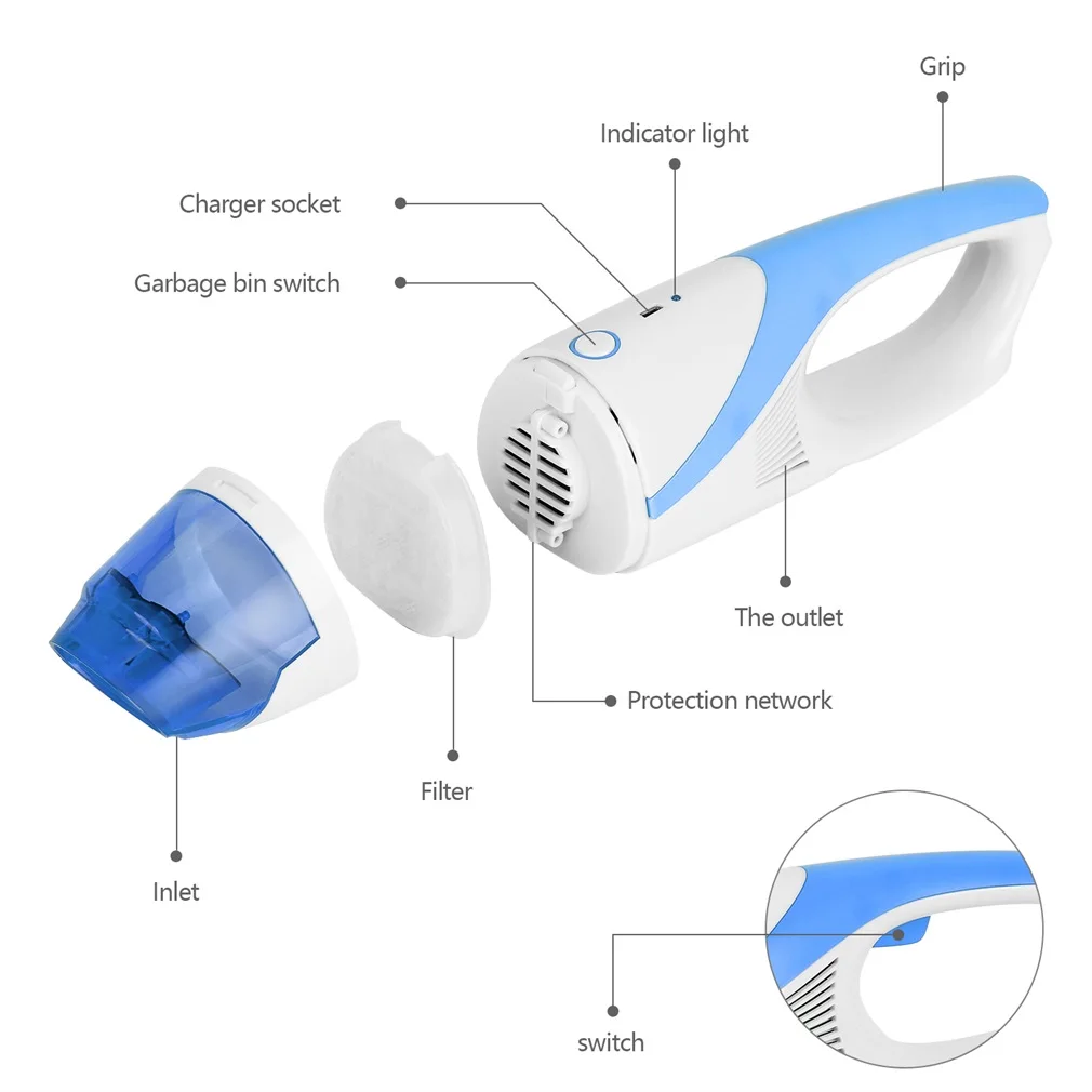 1. Многофункциональность: подходит для небольшого количества пыли или мусора, подходит для рабочего стола, местной земли, кровати, автомобиля и т. д., с многофункциональными двойными головками.