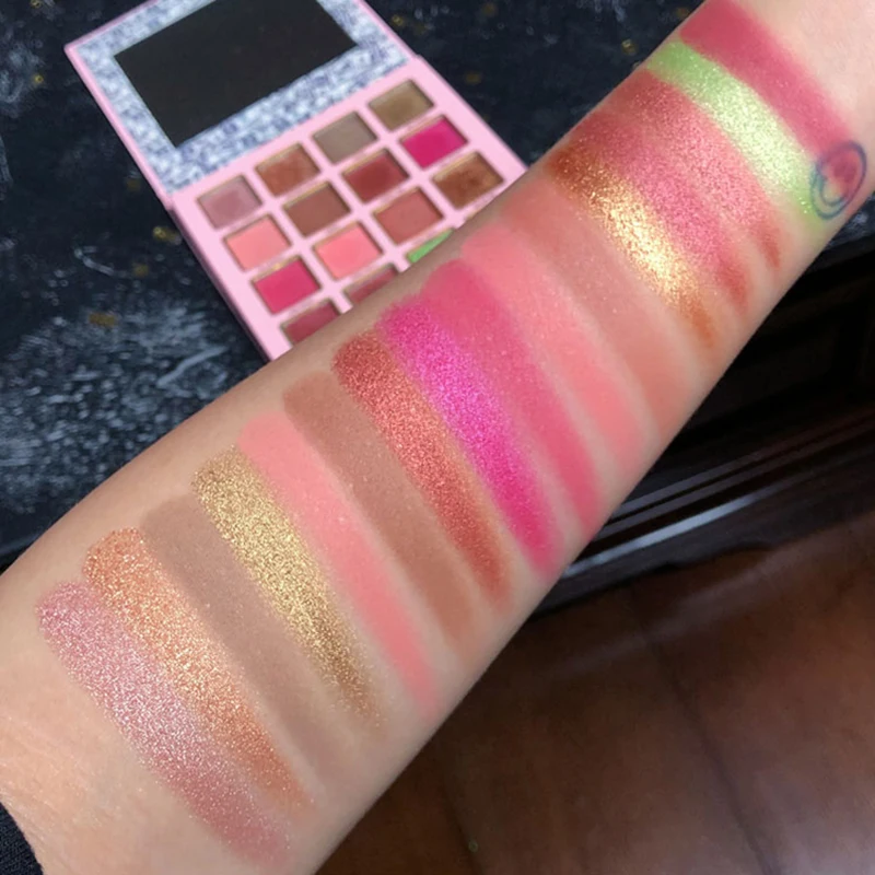Палитра теней изготовлена из 16 цветов гладкого мерцания и матового порошка.