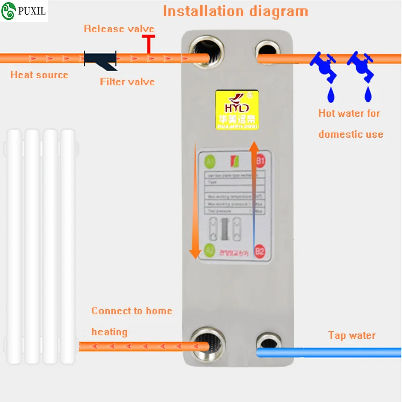 Название: паяный пластинчатый Тип теплообменниками Материал: нержавеющая сталь SUS 304, пищевая Сварочный материал: 99.9% медь Применение: домашний чиллер сусла, Famliy горячего водоснабжения Резьба порта A1, A2:1/2 "BSPT Male Резьба порта B1, B2:1 "BSPT Male Номер пластин: 120 пластин Размер: 195x85x380mm Площадь теплопередачи/пластина: 0,028 м2 (0,30 ft2) Толщина одной пластины: 0,25-0,35 мм Максимальный расход: 12 м3/ч Максимальное давление: 1,6 МПа (228 PSI) Холодильная мощность: 12 кВт (3516 BTU/час) Рабочая температура: от-160 ℃ до + 185 ℃ Использование для горячего сусла: Порт A1: горячий сусла, порт A1: холодный сусла Порт B1: холодная вода, порт A2: горячая вода Расход холодной воды выше, чем лучше. Использование способа подачи горячей воды Famliy: Порт A1: холодная вода, порт A2: горячая вода Порт В1: центральное отопление;, порт В1: центральное отопление Варианты Инструкция: Та же сторона: означает, что 4 порта находятся в одной стороне Разные стороны: означает, что 4 порта находятся в разных сторонах, каждая сторона с 2 портами. Пожалуйста, выберите его в соответствии с вашим собственным требованием. Спасибо за понимание. К тому же выше четыре порта, есть вентиляционное отверстие на теплообменниками для 50 пластин теплообменниками и более поздних версий, Функция этого вентиляционного отверстия заключается в том, чтобы избежать, если в теплообменнике остается некоторое количество воздуха, и вам нужно выпустить оставшийся воздух, чтобы вода могла пройти через, когда вы впервые используете этот теплообменник. Для обуви остальных сезонов, вентиляционное отверстие должен быть подключен с заглушкой.