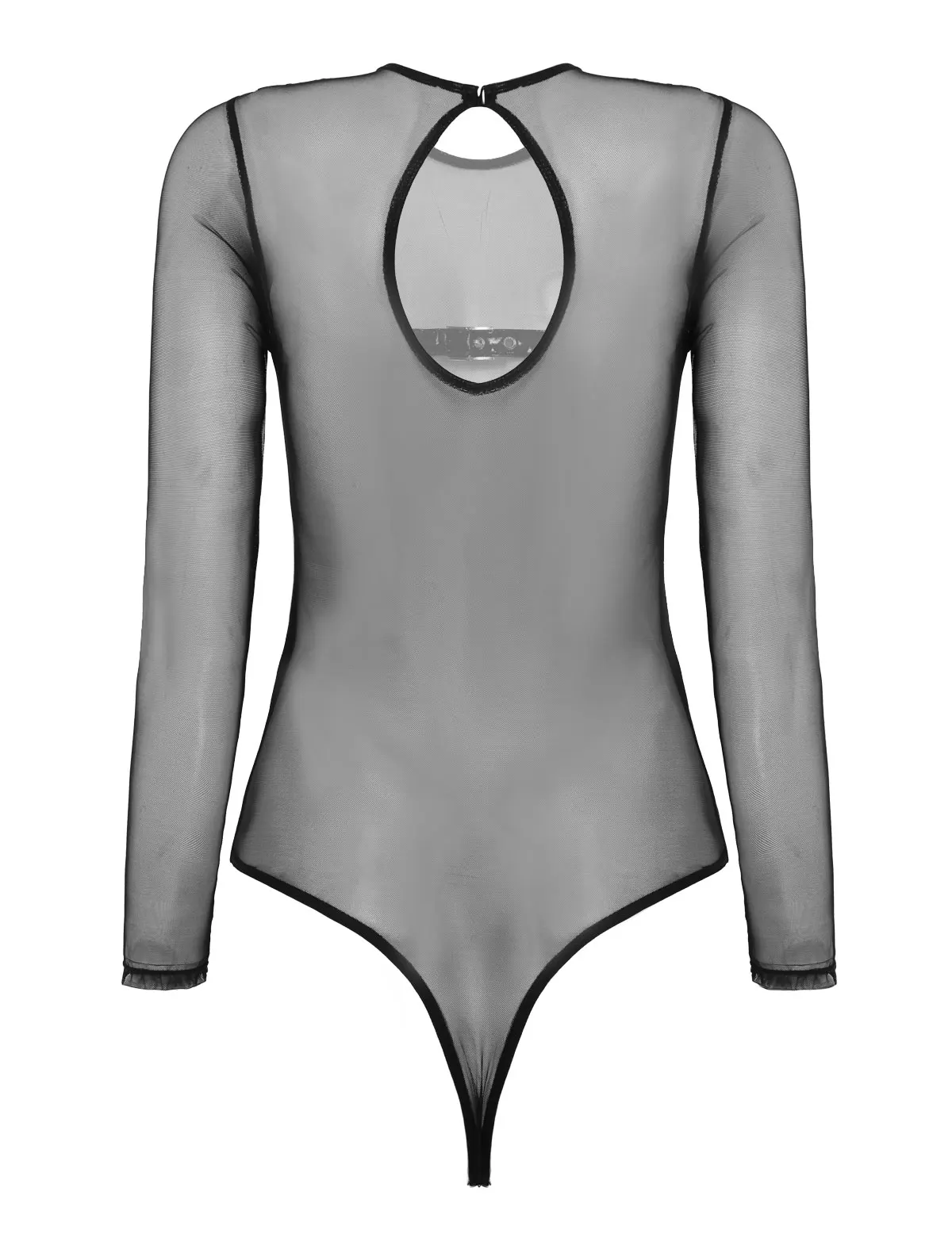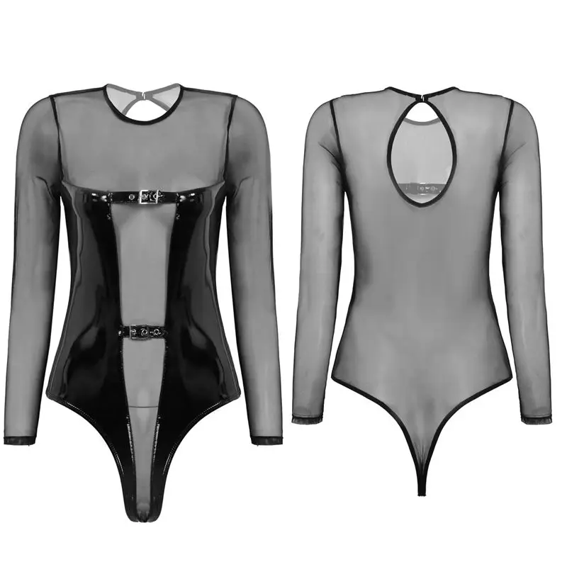 Круглый вырез и длинные рукава, с пряжками спереди на груди, уникальный дизайн из прозрачной сетки, чтобы показать ваши изгибы тела.