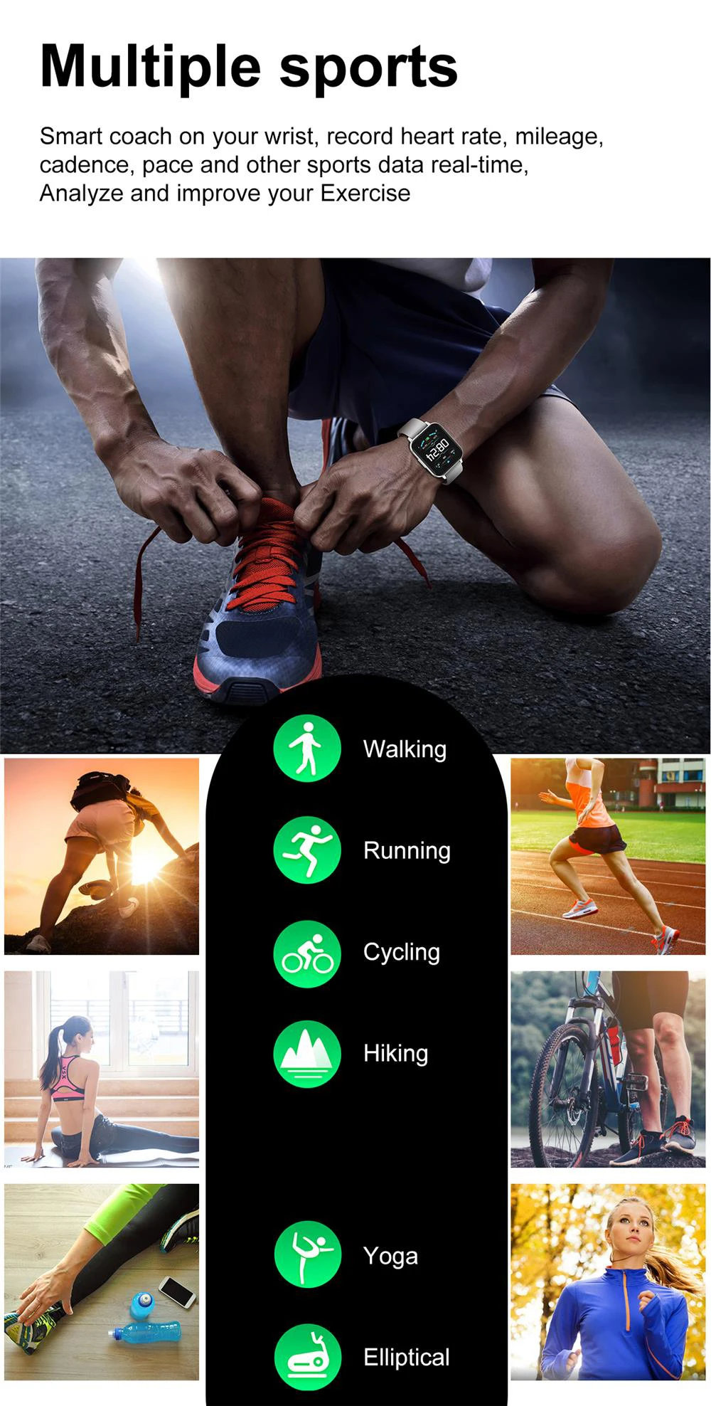 * Здоровье: ЭКГ, кровяное давление, пульс, кислород в крови, напоминание о сидячем положении, мониторинг сна и т. д.