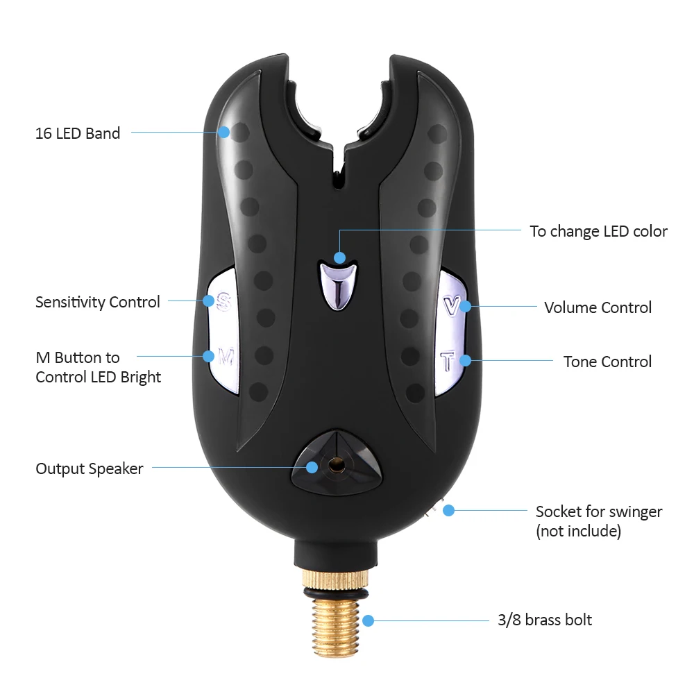 Звуковые и визуальные оповещения позволят вам не пропустить укуса и облегчить вашу рыбалку. (Примечание: Этот сигнализатор для ловли рыбы не имеет функции приема.)