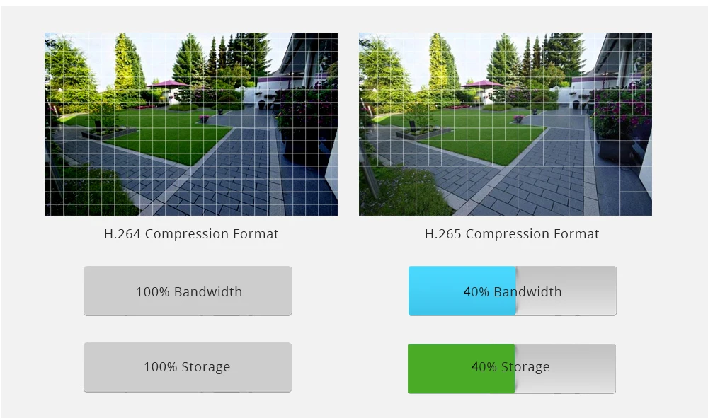 Поддержка формата сжатия H.265, экономия места для хранения 60%