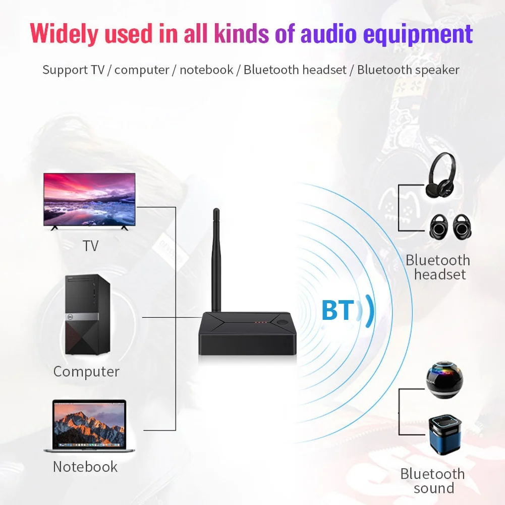 Это двухцелевой bluetooth-адаптер, который поддерживает функцию передачи Bluetooth и преобразования цифрового в аналоговый. Питание подается от USB 5 В.
