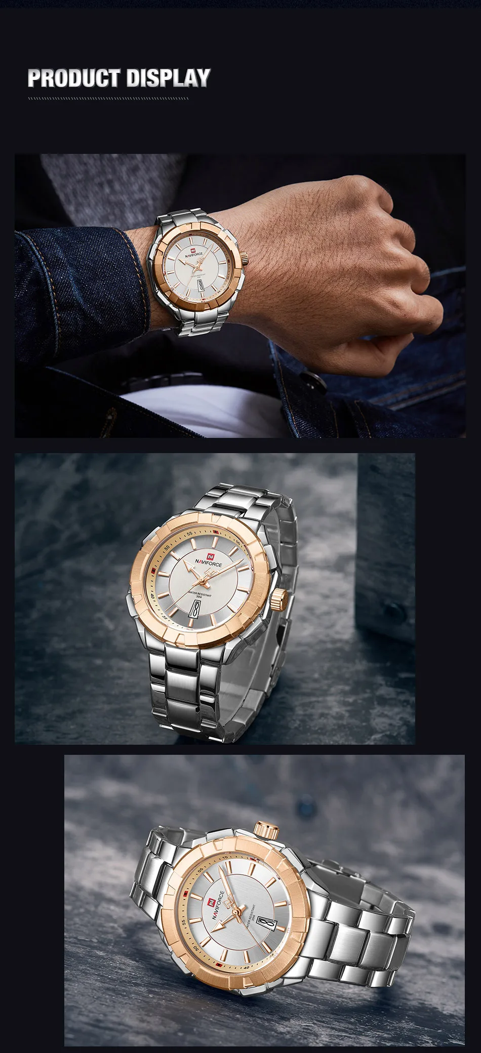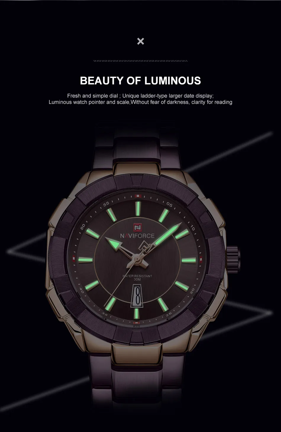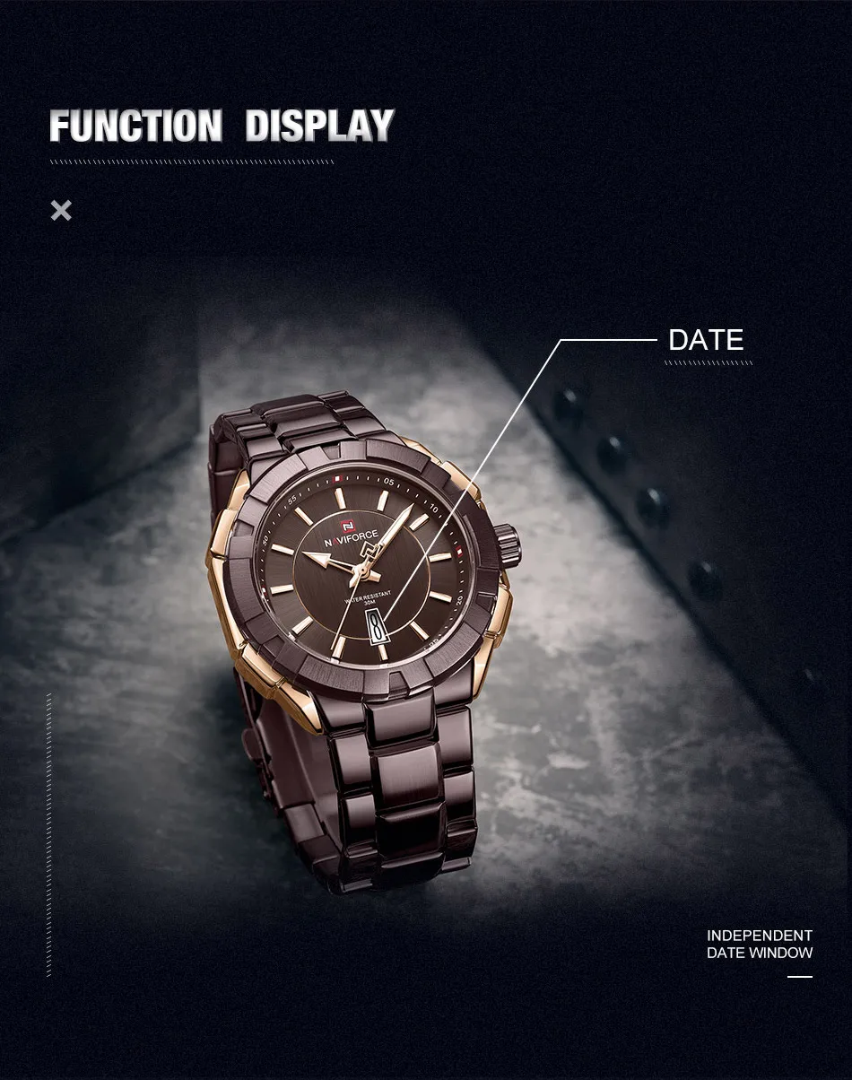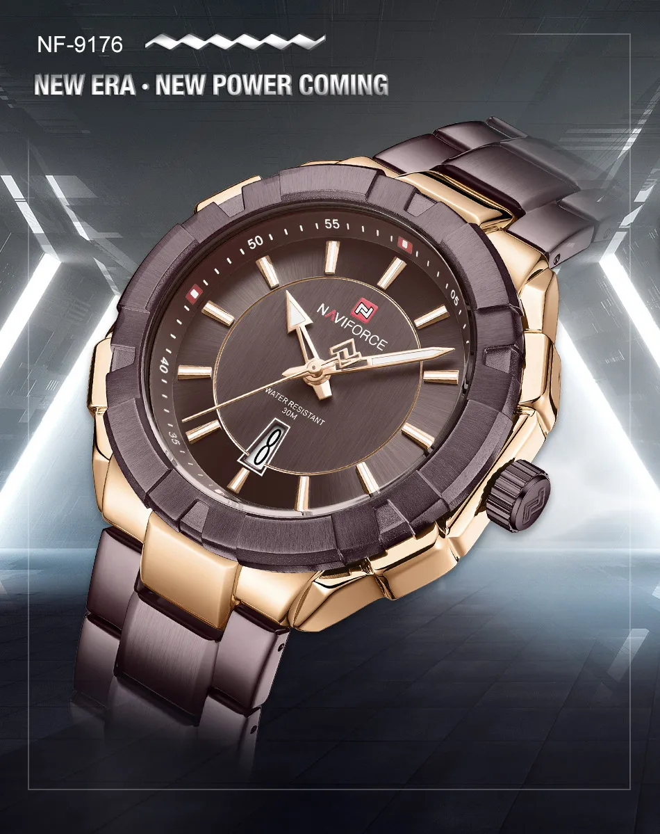 Модель: NAVIFORCE NF9176 Часовой механизм: кварцевый механизм Пол: Для мужчин и мужской Стиль: Модный, Повседневный, Спортивный Материал циферблата: закалённое минеральное стекло Материал ремешка: ремешок из нержавеющей стали Тип застежки: складная застежка с безопасной Диаметр циферблата: 48,5 мм Чехол Толщина: 13 мм Длина ремешка: 240 мм Ширина ремешка: 23 мм Вес изделия: 159 г Характеристики: Водонепроницаемость 30 м, отображение даты, светящиеся стрелки Товары включают: оригинальные часы * 1, гарантийный талон * 1, Инструкция * 1 Мы поддерживаем прямую доставку и оптовую продажу