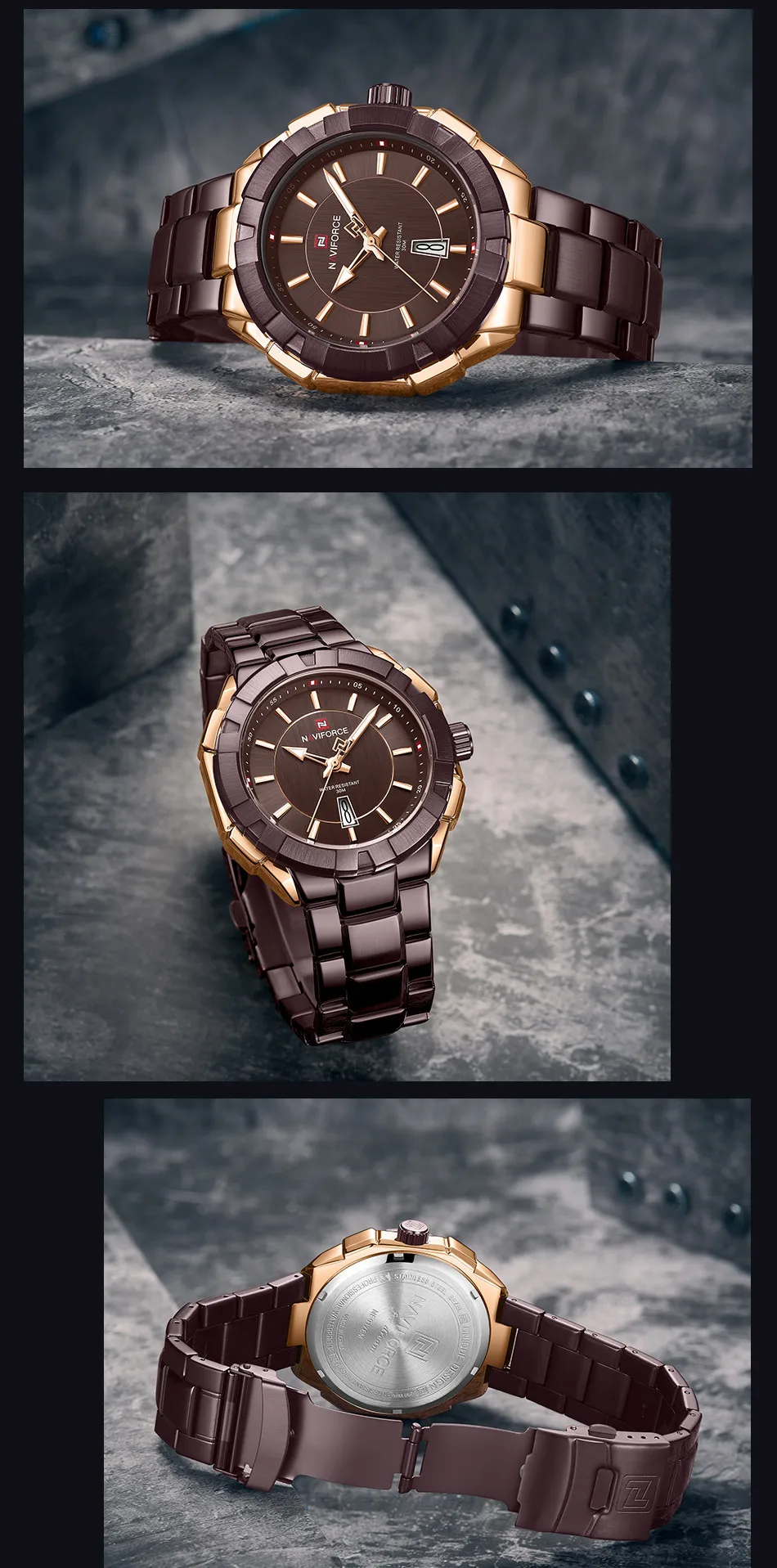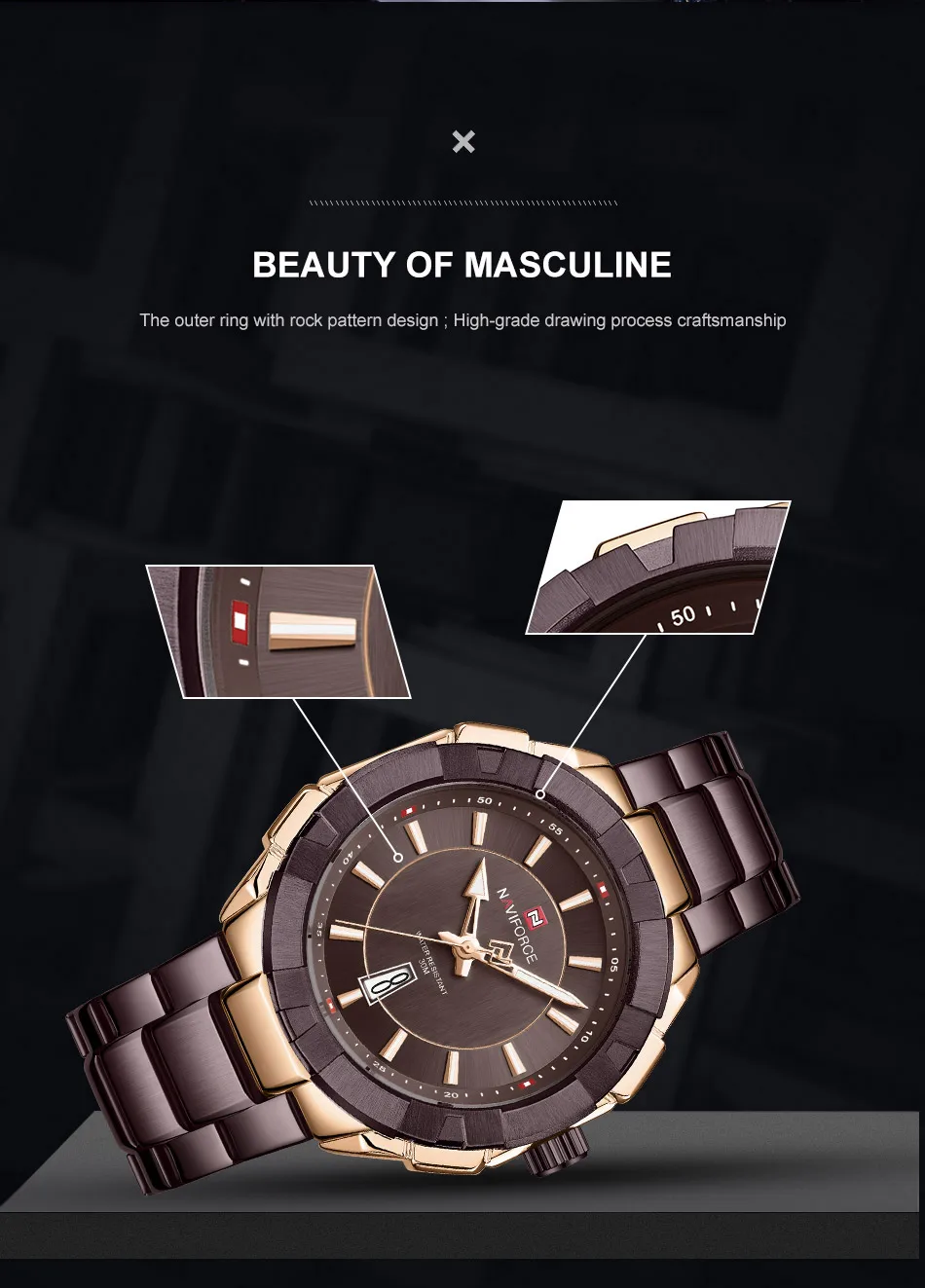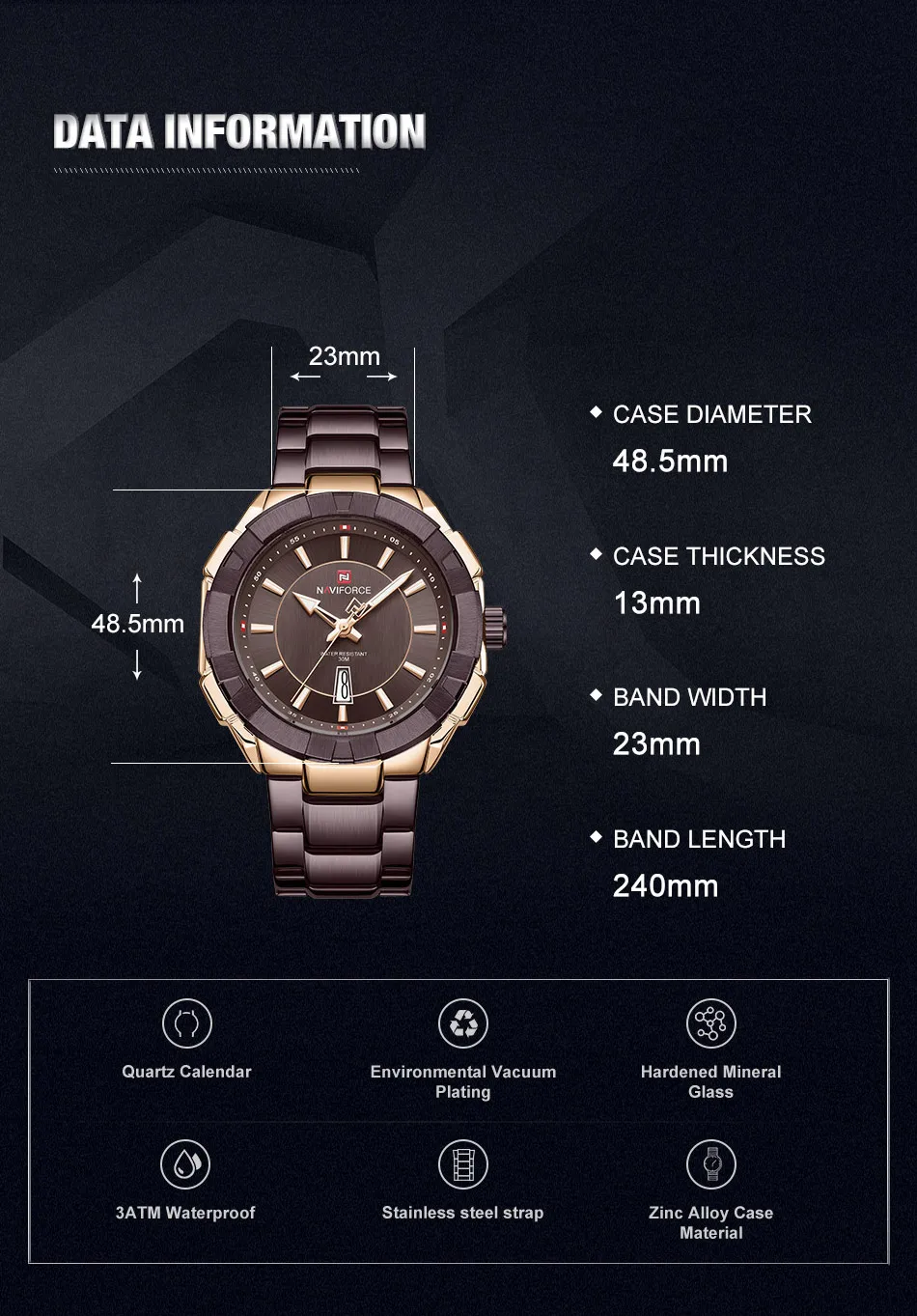 Модель: NAVIFORCE NF9176 Часовой механизм: кварцевый механизм Пол: Для мужчин и мужской Стиль: Модный, Повседневный, Спортивный Материал циферблата: закалённое минеральное стекло Материал ремешка: ремешок из нержавеющей стали Тип застежки: складная застежка с безопасной Диаметр циферблата: 48,5 мм Чехол Толщина: 13 мм Длина ремешка: 240 мм Ширина ремешка: 23 мм Вес изделия: 159 г Характеристики: Водонепроницаемость 30 м, отображение даты, светящиеся стрелки Товары включают: оригинальные часы * 1, гарантийный талон * 1, Инструкция * 1 Мы поддерживаем прямую доставку и оптовую продажу