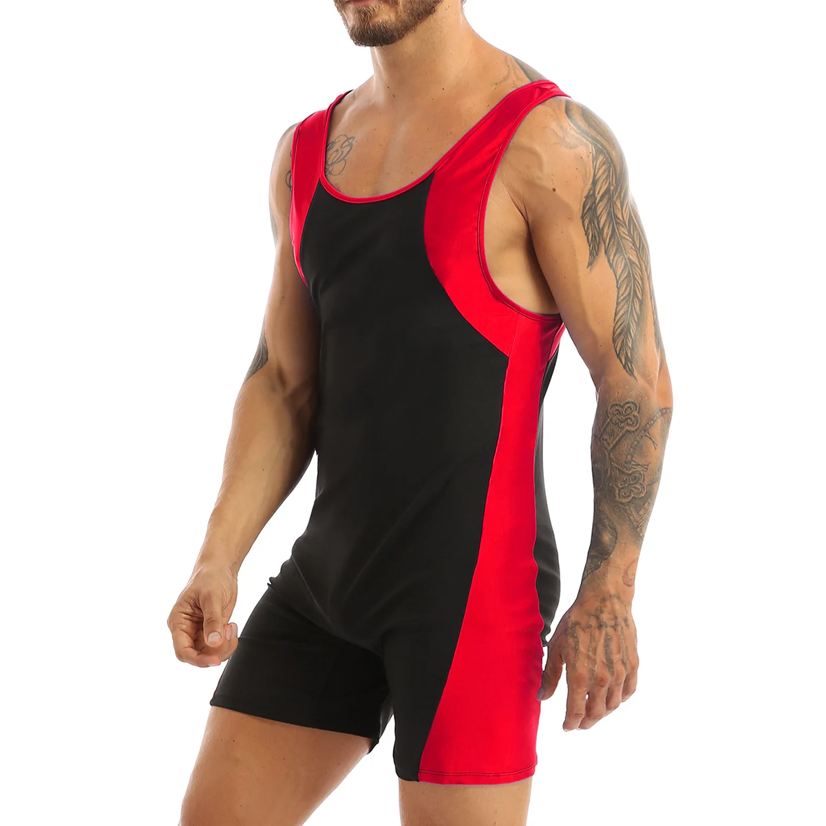 Мужской цельнокроеный жилет короткий гимнастический костюм трико боди для спорта фитнеса бодибилдинга, удобная посадка и мышечный крой.